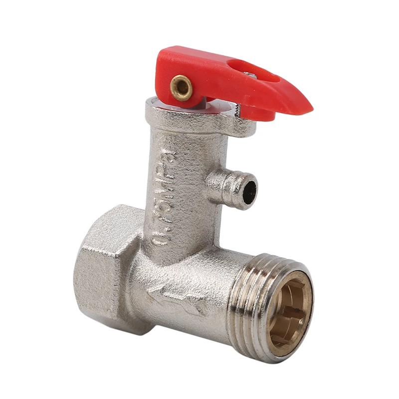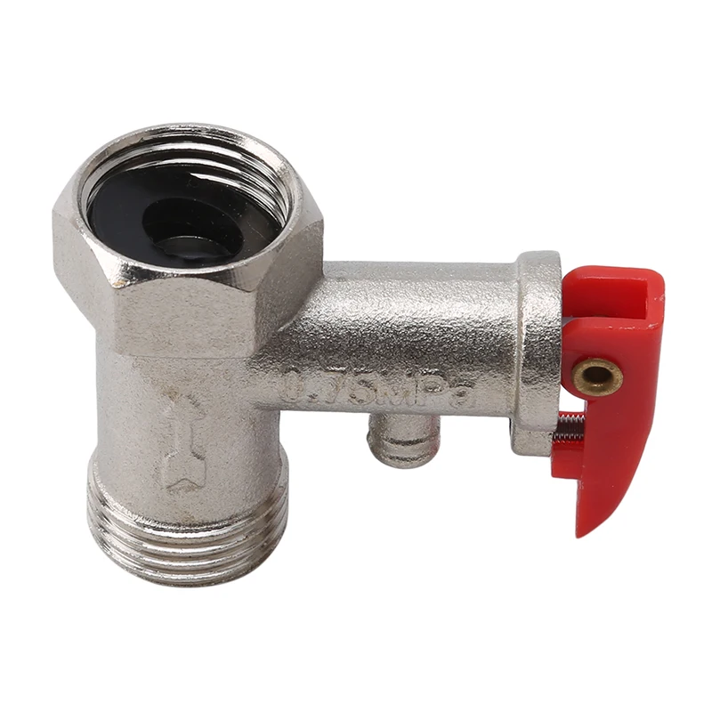 Красный рычаг блокировки Серебряный тон Металлический предохранительный клапан 0,75 МПа для электрического водонагревателя специальный редукционный клапан давления