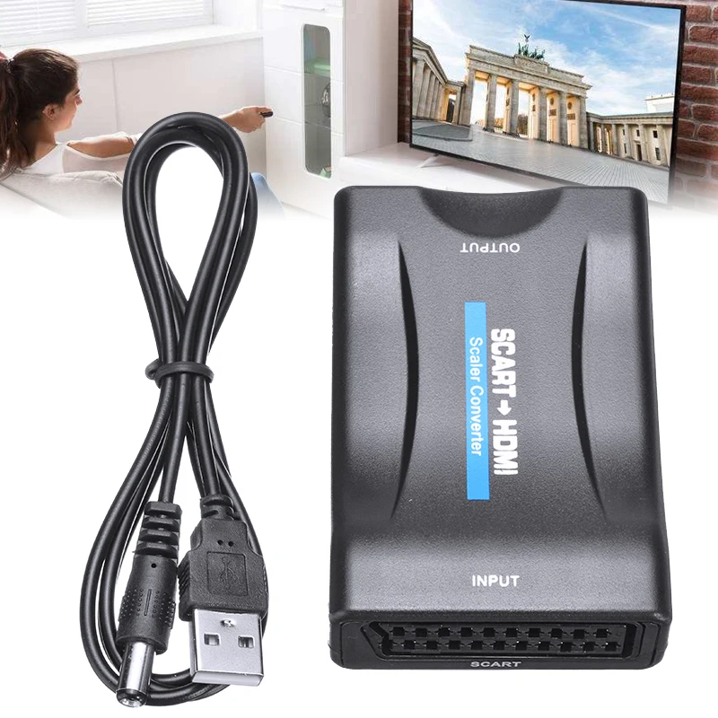 Для Scart to HDMI конвертер 1080P HD TV Wandler AV видео аудио сигнал адаптер HD приемник ТВ с ЕС Разъем питания конвертерUS $11,87