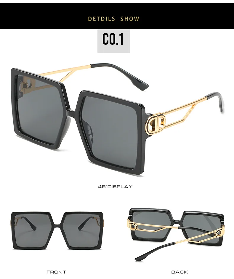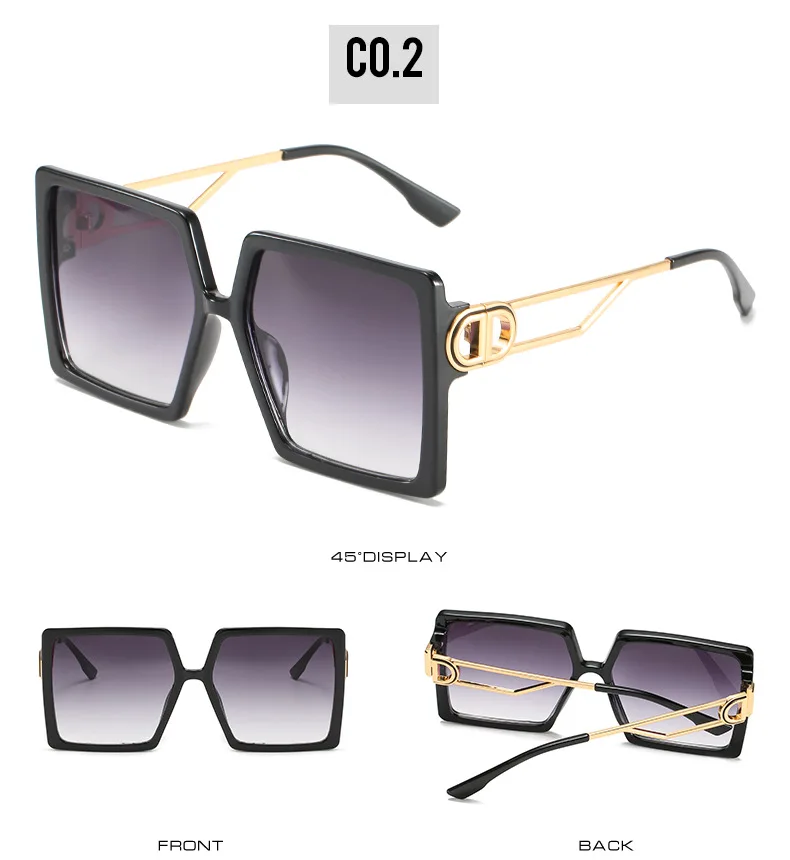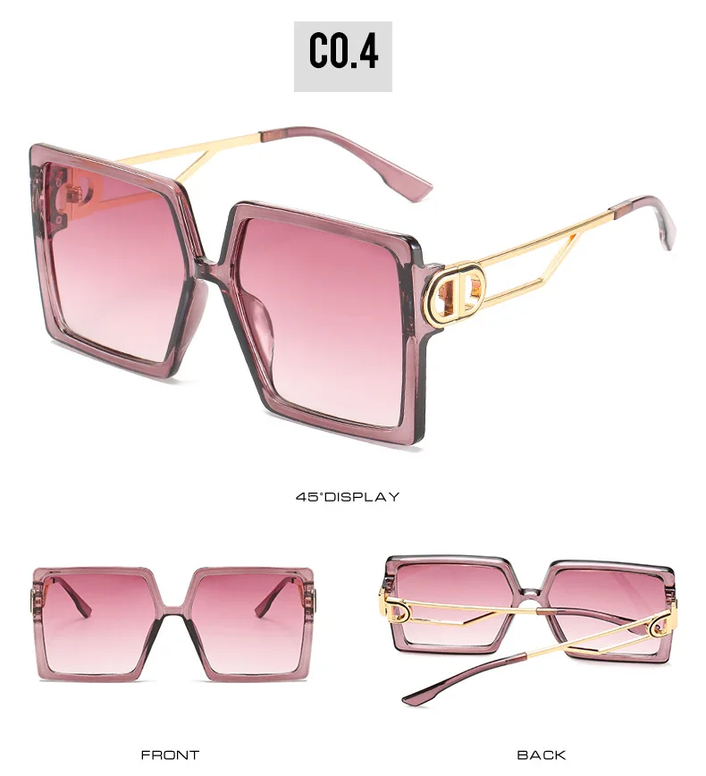 Модные негабаритные Квадратные Солнцезащитные очки для женщин люксовый бренд D буквы Солнцезащитные очки женские трендовые Цветные Металлические оттенки мужские очки