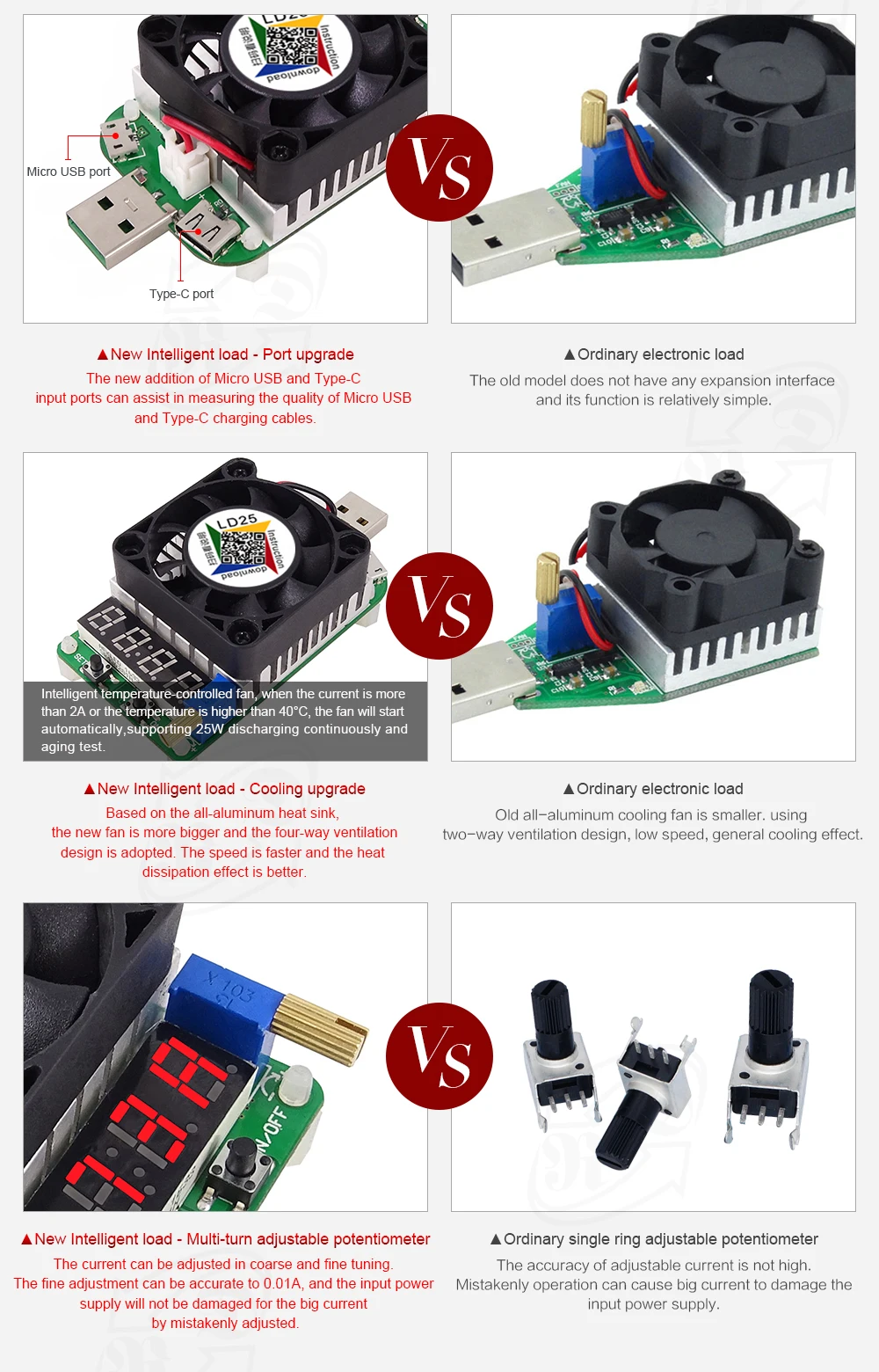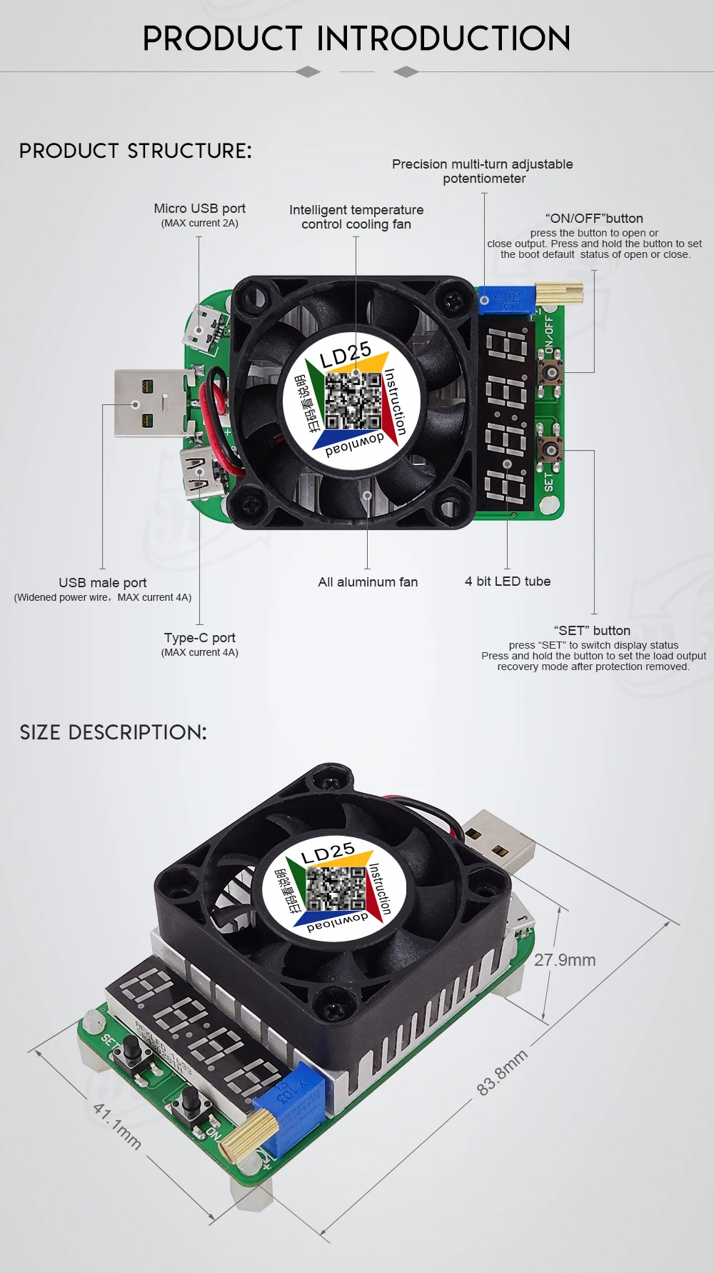 LD25 LD35 USB интерфейс электронный нагрузочный резистор разрядка батарея тест светодиодный дисплей вентилятор регулируемое напряжение тока 25 Вт