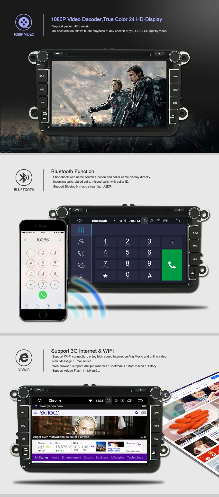 Поддержка USB DAB + приемник (работает с помощью экрана Toush)