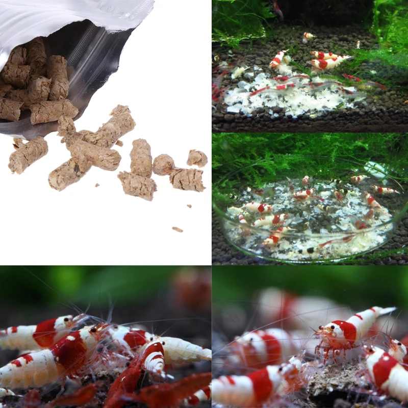 Немедленно утоните в воде. Основной компонент-морские водоросли, которые не облаются в воде. Некоторые клиенты забрасывают дополнительную еду для креветок, прежде чем они отправились на короткие праздники.