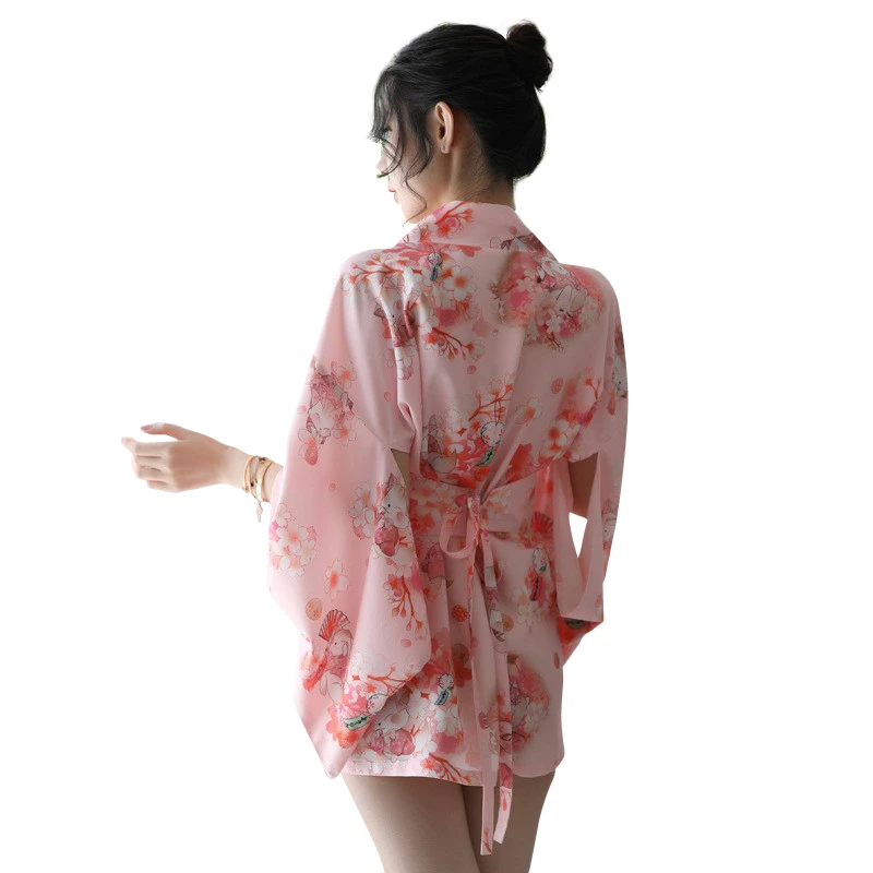 Женское кимоно с принтом сакуры, нижнее белье кимоно, сексуальное японское женское кимоно, эротическое гладкое купальное кимоно, халат 49