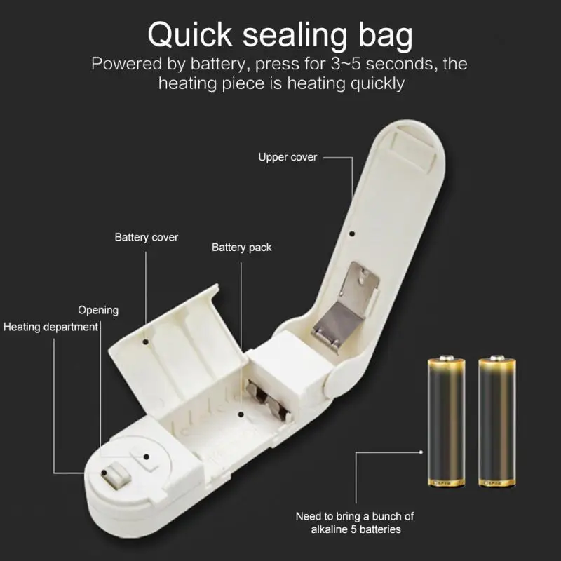 И машина для запечатывания, и машина для разгерметизации могут быть запечатаны при высокой температуре. Обычные пластиковые пакеты можно легко запечатать и хранить, маленькие по размеру, легко носить с собой, хорошая герметизация, безопаснее хранить или хранить в холодильнике. Этот продукт не имеет батареи, вам нужно принести свой собственный (лучше всего использовать Nanfu аккумулятор )