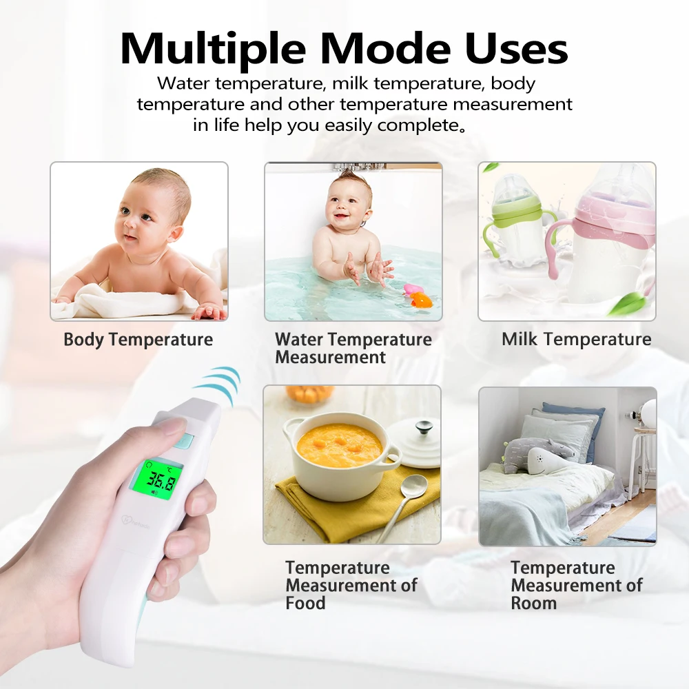 Легко переключаться в режим корпуса и поверхности, быстро узнать изменение температуры в течение 1 секунды. Вы можете узнать температуру, связанную с ребенком, например, молоко, воду для ванны, еду, чтобы избежать ожогов для вашего ребенка дома. Термометр также может использоваться в любом месте, как кухня, больница, торговый центр, супермаркет, школа и т. Д.