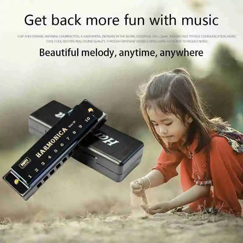 В каждом звуковом отверстии есть два тростника, каждое из звукового отверстия может излучать два звука (сосать и выдувать), поэтому есть 20 тонов. Число на корпусе губной гармошки (1-10) восстанавливает форму, чем больше ее количество, тем выше высокая мощность. Просто выдуйте или отсосите отверстие с номером на жгуте, это очень легко для всех.