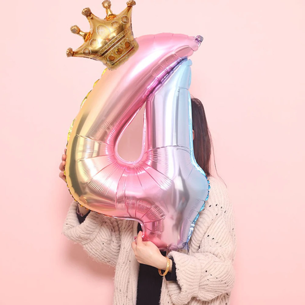 32 дюйма количество Фольга шары Корона цифры воздушные клипсы для воздушных шаров, День рождения украшения