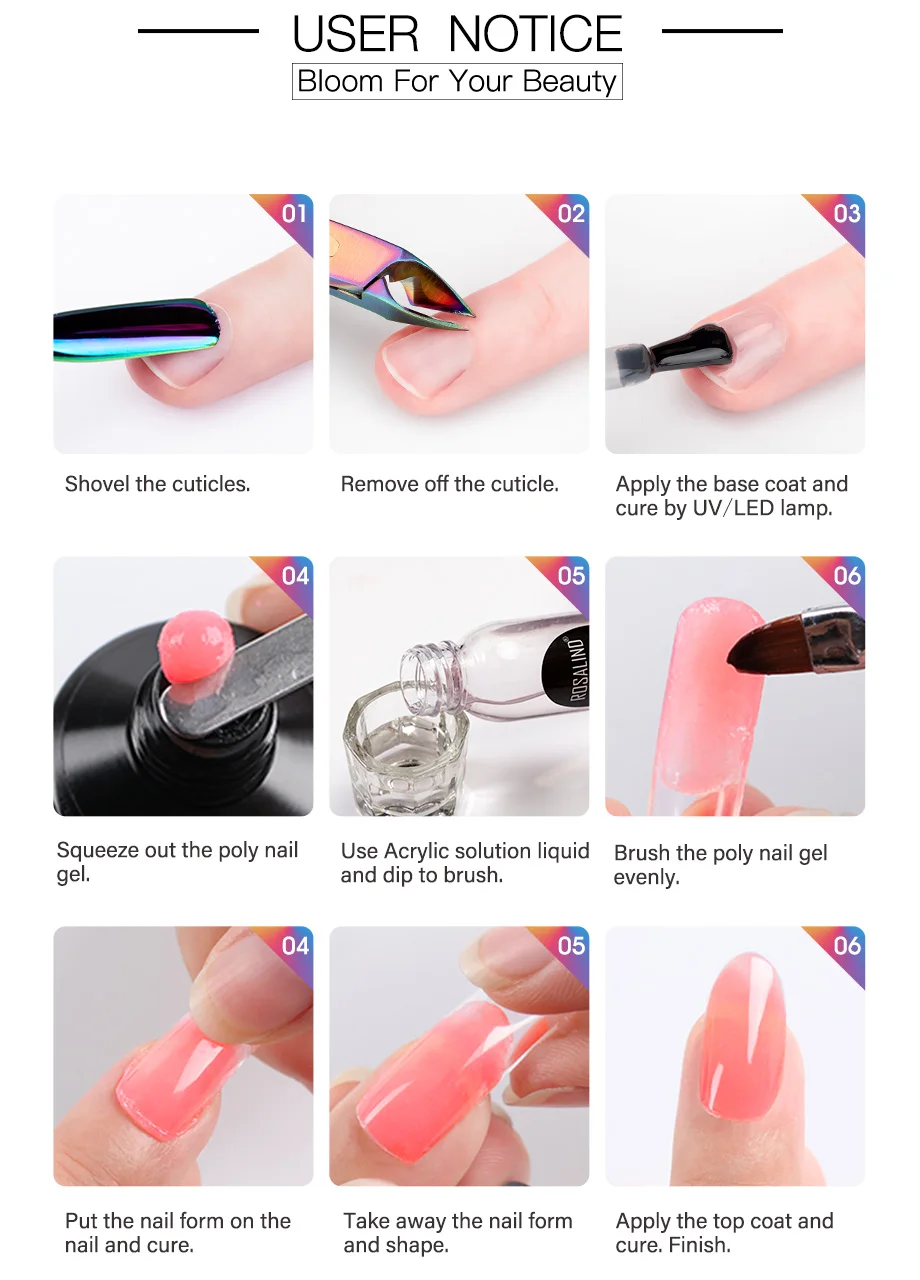 6. Нанесите поли на ноготь. Высушивается УФ/светодиодной лампой.