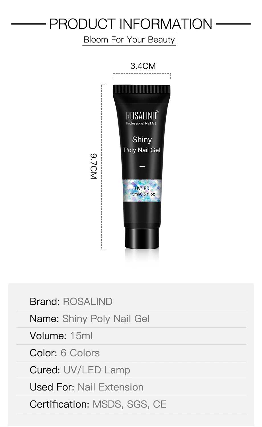 Чистый объем 15 мл. Так как емкость флакона превышает 15 мл, полигель с блестками не будет полностью заполняться флаконом!