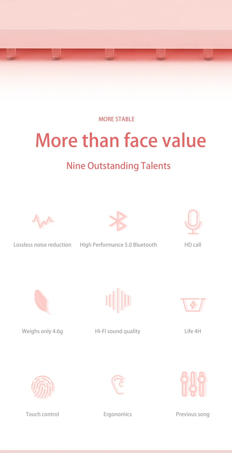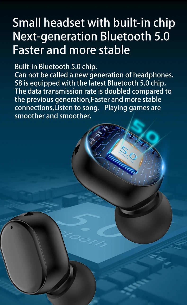 Особенности: • Мини-беспроводная невидимая конструкция; • Супер мини-размер и спрятан в ушах, без нагрузки на ношение; • Эргономичный дизайн наушников, стабильный в ушах, хорошо подходит для вождения, спорта, бизнеса или отдыха; • Повторное соединение через Bluetooth V5.0 + EDR беспроводной сигнал с 10-метрового диапазона. • Глубокий микрофон с шумоподавлением DPS обеспечивает четкое качество вызова; • Голосовая Подсказка для сопряжения, вызова, включения/выключения; • Одна функциональная кнопка для включения/выключения, переключения песен, изменения языка, приема звонков. Спецификация: Номер модели: S8 Версия Bluetooth: Bluetooth V5.0 Расстояние Bluetooth: около 10 м Время работы: около 4-5 часов Время зарядки: около 1-2 часов Время работы в режиме ожидания: около 110 часов Аккумулятор capcity:50 мАч Совместимый телефон: совместим с Android, iOS, Microsoft, Tablet, 99% телефона с bluetooth. Посылка: 1 * S8 наушники (только 1 шт.) 1 * USB кабель зарядного устройства 1 * Использование вручную