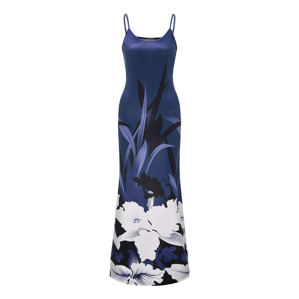 Женское Модное Длинное Платье на бретельках с v-образным вырезом и цветочным принтом