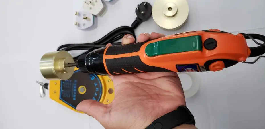 Ручная электрическая укупорочная машина в основном используется для затягивания и ослабления винтов. Легко носить с собой, который может быть легко использован для затягивания или ослабления крышки. Регулируемое сцепление (регулировка) позволяет эффективно избежать повреждения крышки и уменьшить износ внутренней вилки, как только крышка затянет патрон, чтобы остановить спиннинг, показать, что вы можете быть следующей операцией крышки. Колпачок для Пинг подходит для различных высокопрочных колпачков для бутылок s применяется к колпачкам прямого действия 10-50 мм, одиночная производственная крышка непрозрачность до 30-90 бутылок/мин.