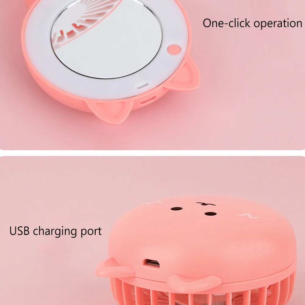 Милый Кот Портативный мини карманный вентилятор перезаряжаемый светодиодный заполняющий светильник с зеркалом для макияжа