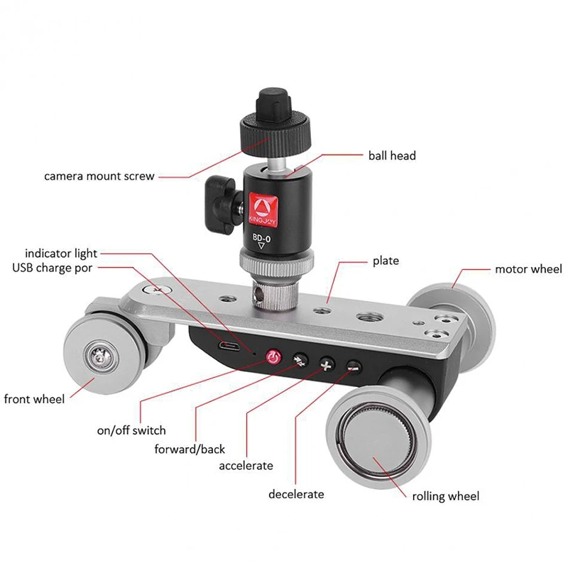 KINGJOY Ppl-06S мини алюминиевый сплав моторизованный электрический трек слайдер Долли грузовик 3-х колесный автомобиль слайдер для Камера видеокамера