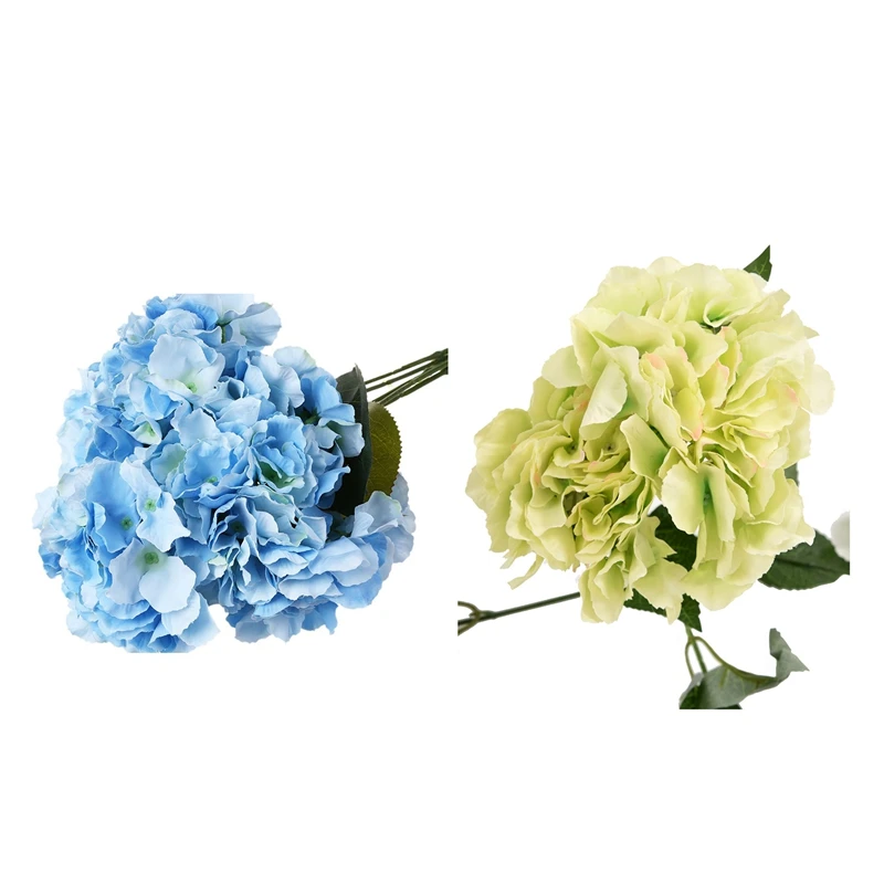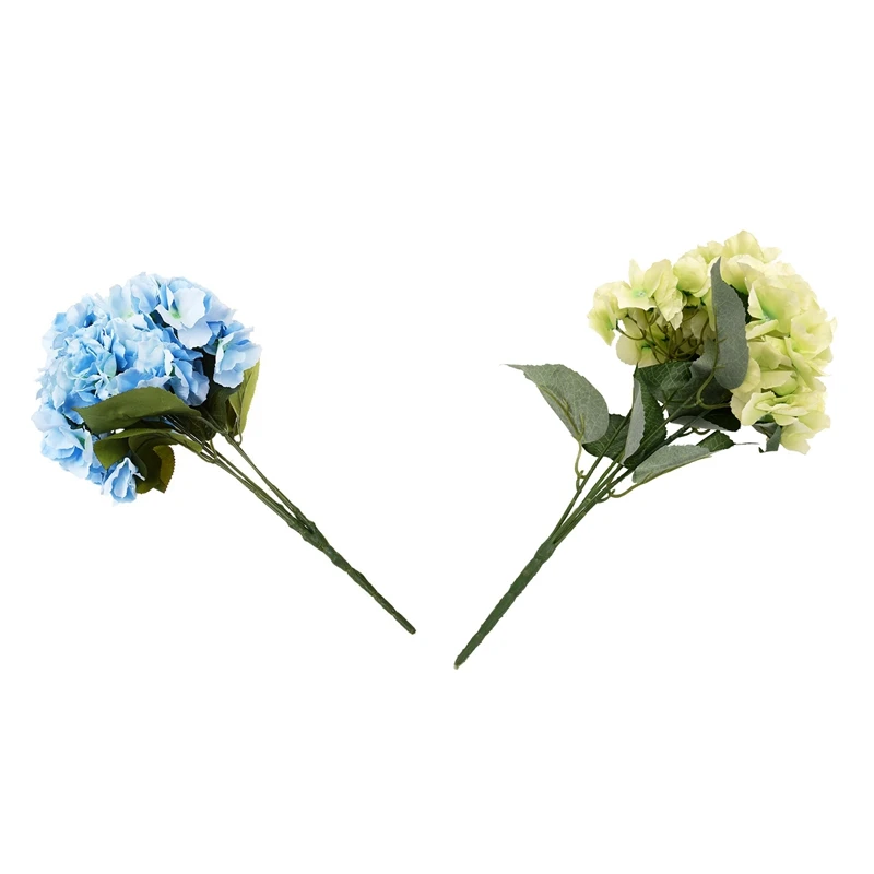 2 пучка искусственных цветов: 1 зеленый букет искусственных цветов и 1 синий букет искусственных цветов