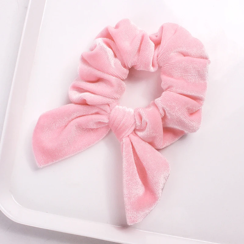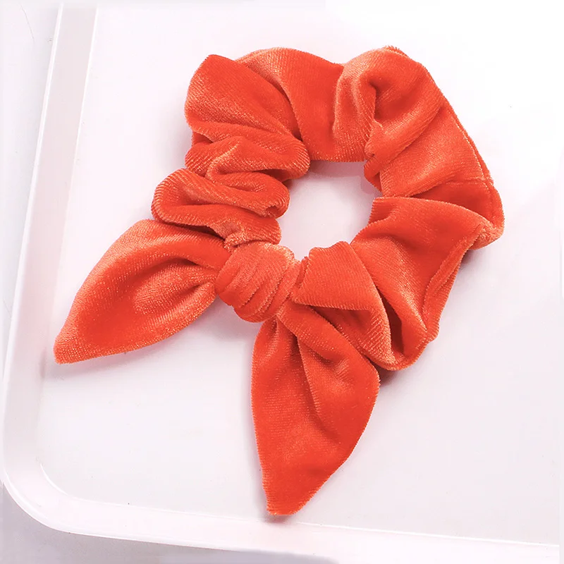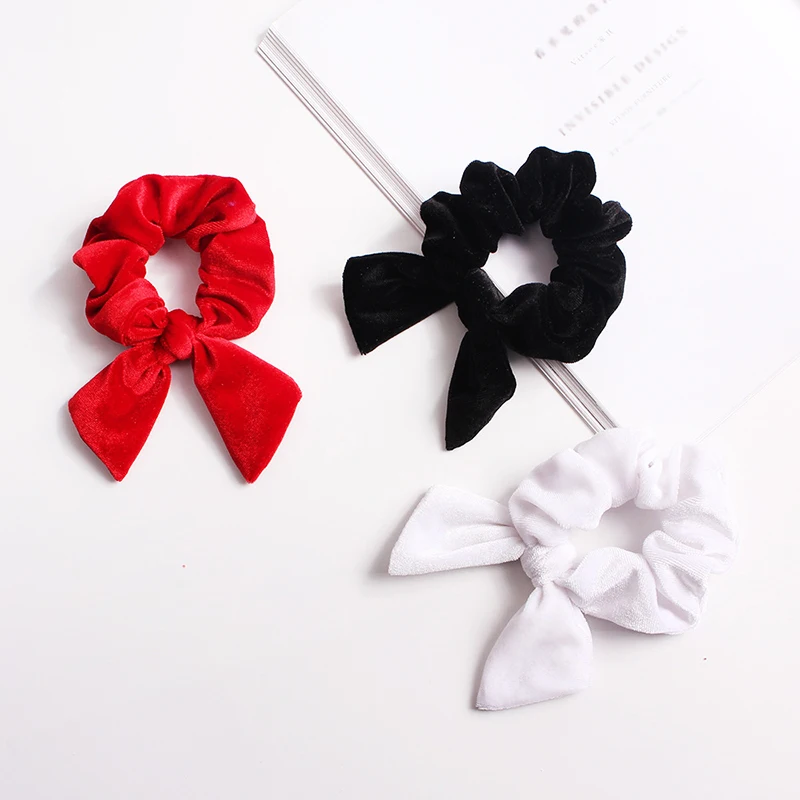 Однотонная бархатная резинка для волос с бантиками и кроличьими ушками, эластичный конский хвост