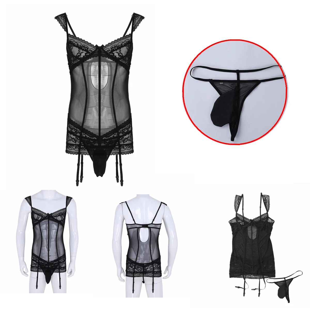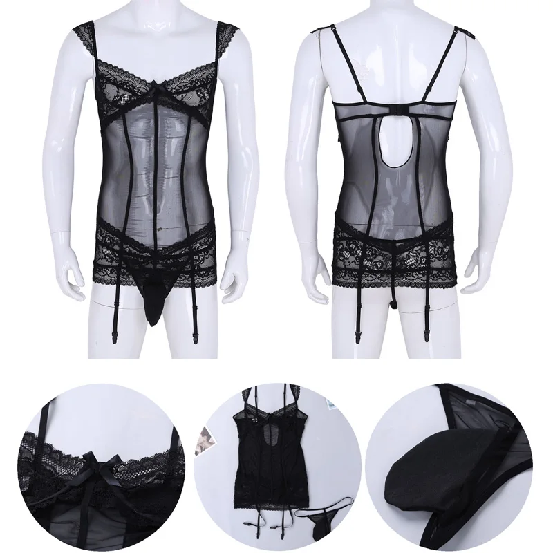 Комплект включает в себя: 1 мужское платье, 1 стринги