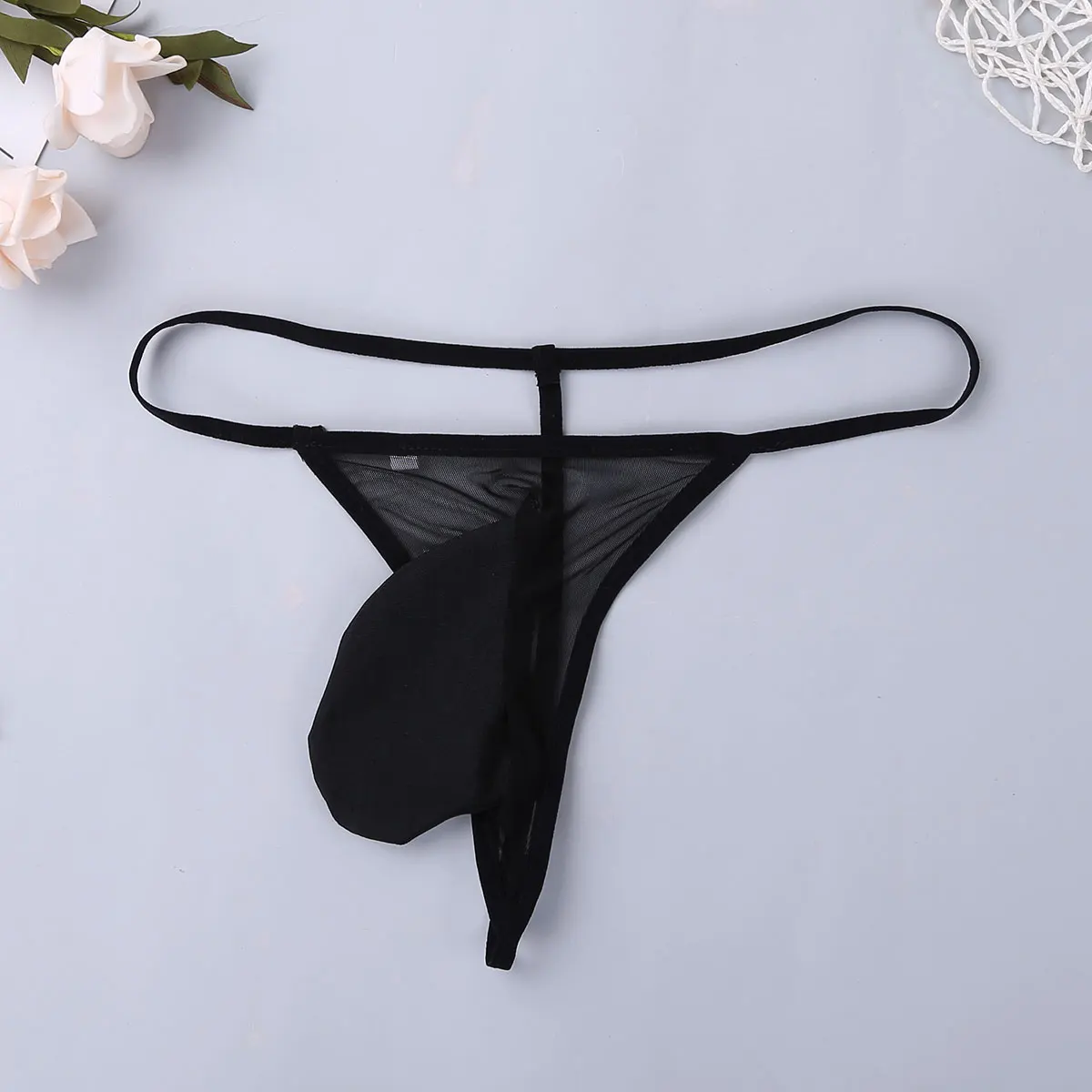 Вырез сзади с 3 рядами застежки на крючок и глаза, кружевной цветочный узор. G-стринги с передним выпуклом мешочком для хорошего обслуживания.
