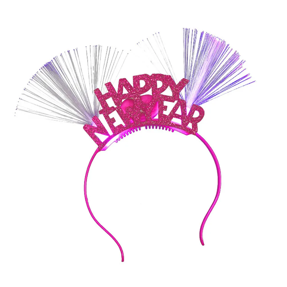 Блестящий новогодний обруч для волос с буквенным принтом, оптический волоконный светильник, вечерние ободки на новый год