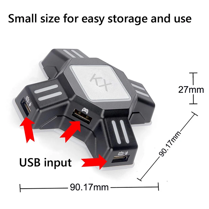 Название продукта: KX конвертер клавиатуры и мыши Совместимость с консолями Nintendo Switch, Xbox One, PS4 и PS3 для игры в игры FPS shootout 1. Поддержка 90% USB клавиатуры и мыши на рынке 2. Клавиатуры с интерфейсом usb-хаб не поддерживаются 3. Консоли XBOXONE и PS4 требуют активации оригинальной ручки 4. Хост-коммутатор нуждается в адаптере OTG для подключения usb-кабеля 5. Поддержка клавиатуры и мыши вместо управления ручкой 6. Размер продукта: 90,17*90,17*27 мм 7. Параметры производительности: Статический ток: менее 50 мА Рабочий ток: 100 мА Входное напряжение: 5 В 8. Посылка содержит: адаптер KX * адаптер TYPEC 1 шт. * Руководство пользователя 1 шт. * 1 шт. Вес: в упаковке: около 118 г