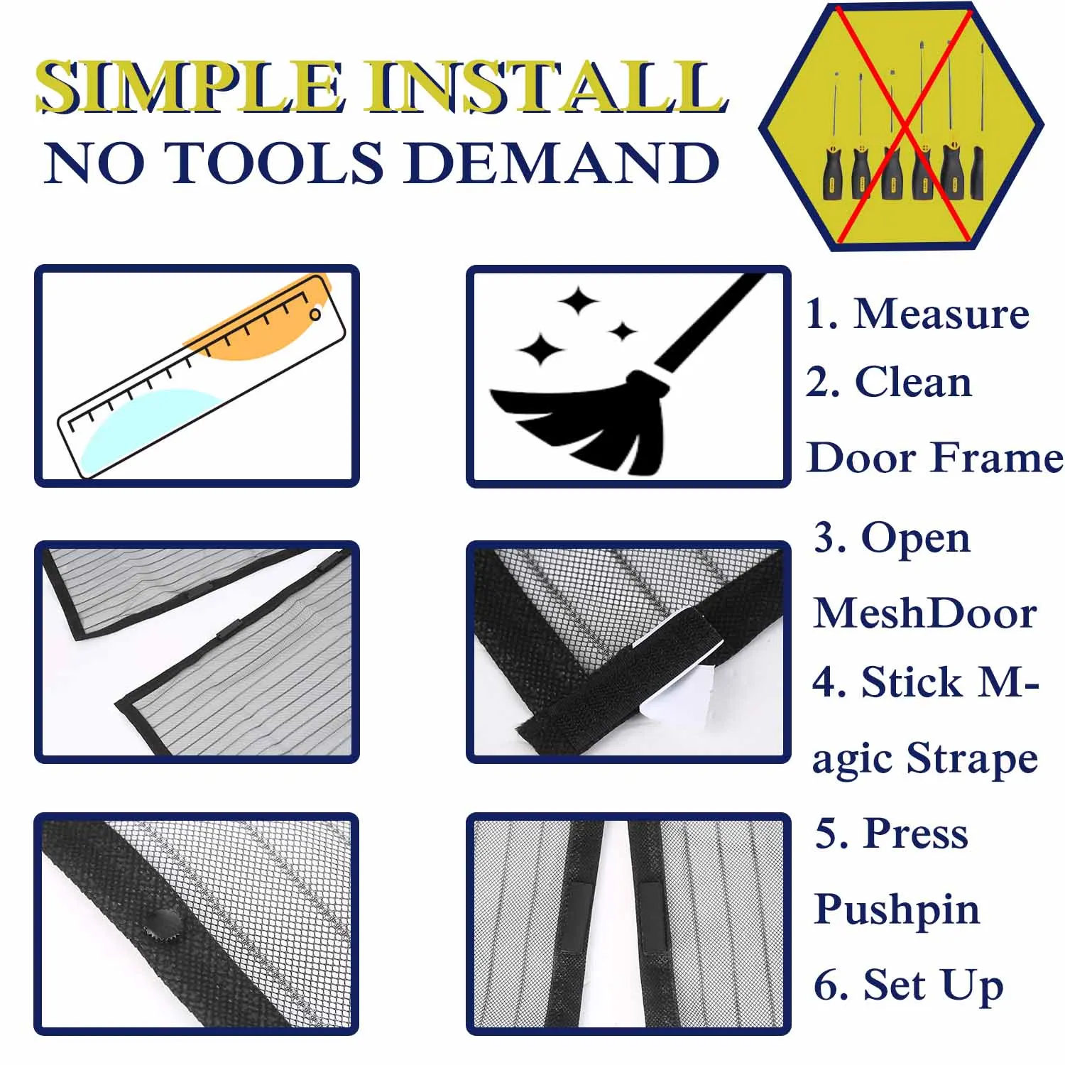 Без рук --- с 24 мощными магнитами и полной рамкой, дверь экрана может открывается, а затем закрывается позади вас, это очень удобно и легко пройти, когда ваши руки полны.