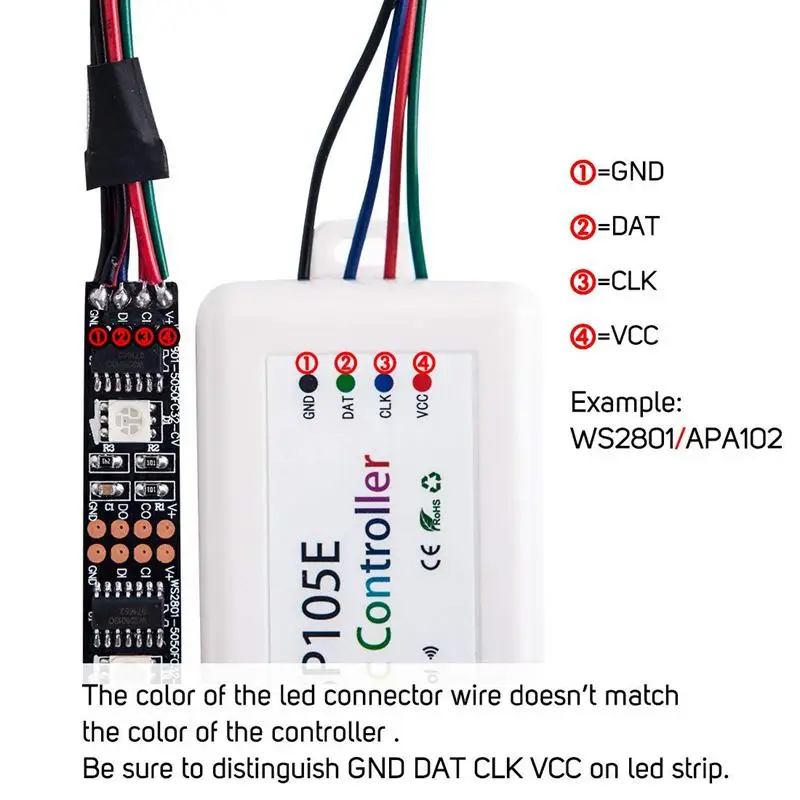 Контроллер поддерживает только светодиодный индикатор smart IC. Он не может поддерживать обычный светодиодный RGB/RGBW без IC.