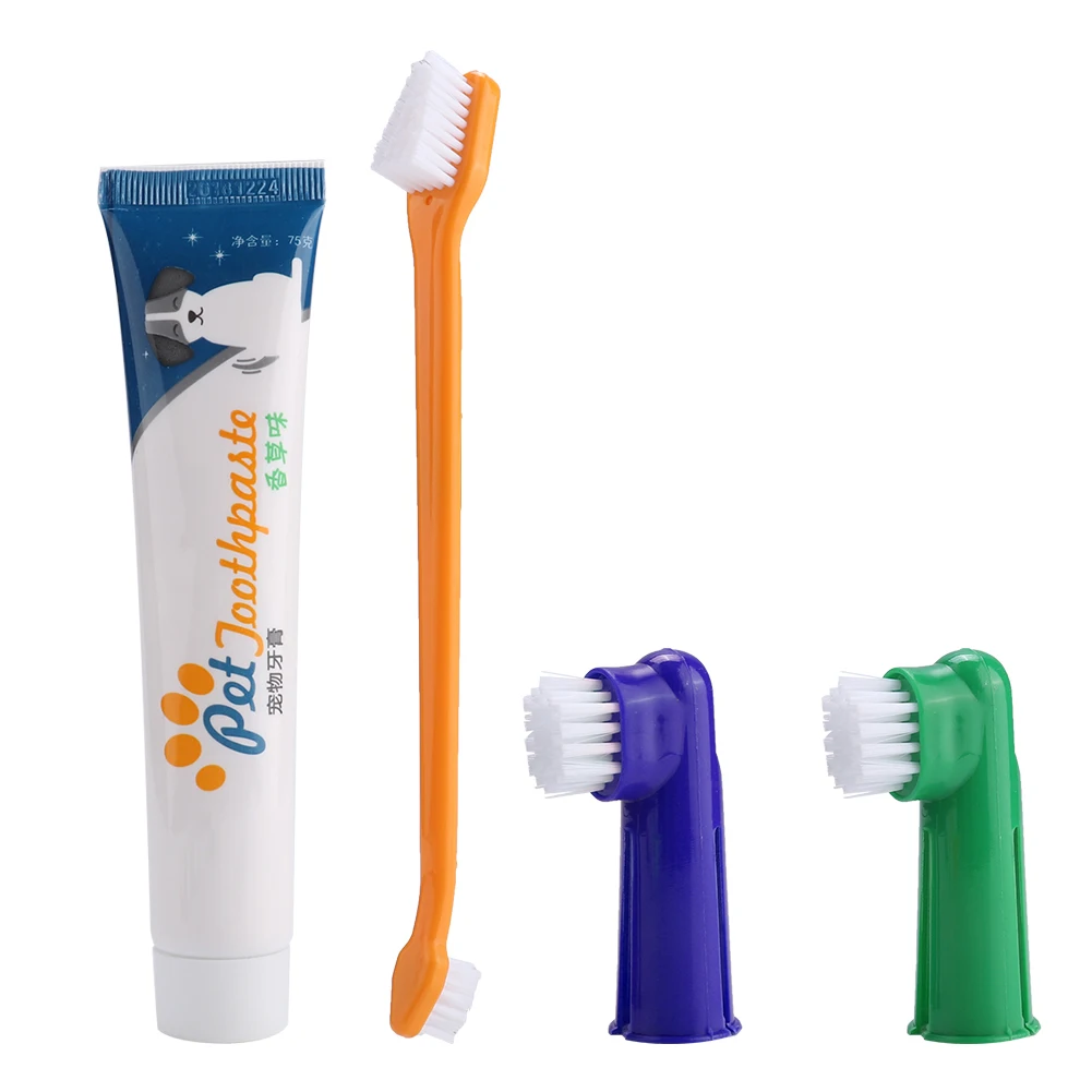 4 шт., набор из зубных паст для домашних животных, собак, кошек, ванильных зубных щеток, инструмент для ухода за зубами, двухголовая зубная щетка, кисть для пальцев