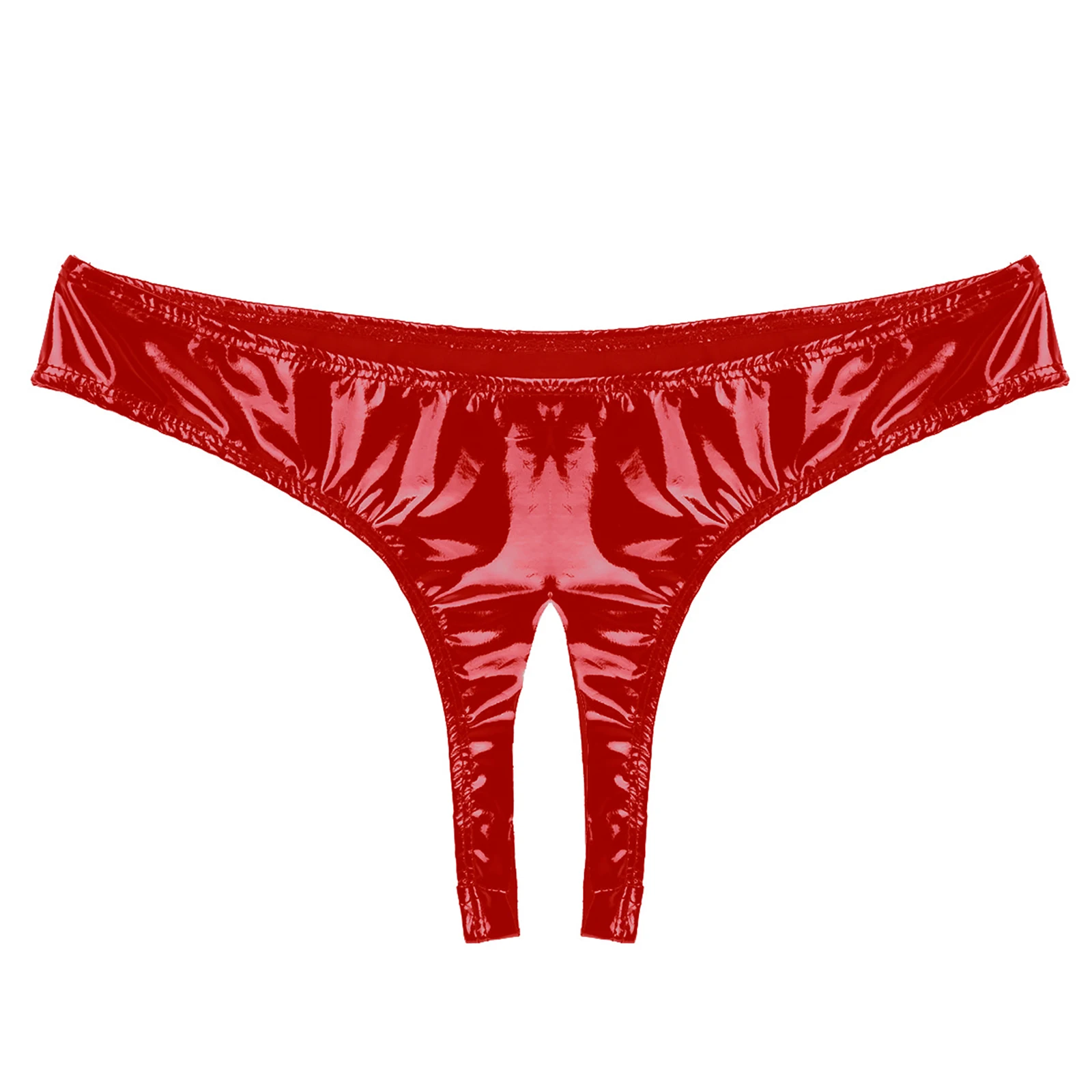 # S-4XL Черное женское нижнее белье из лакированной кожи с открытым шаговым швом