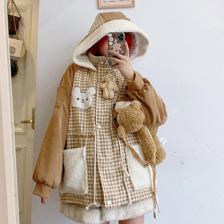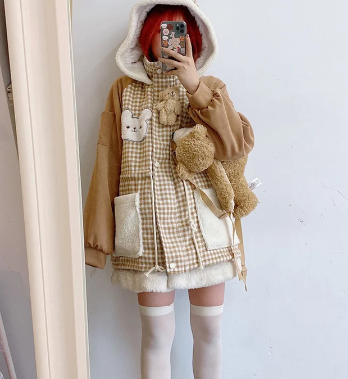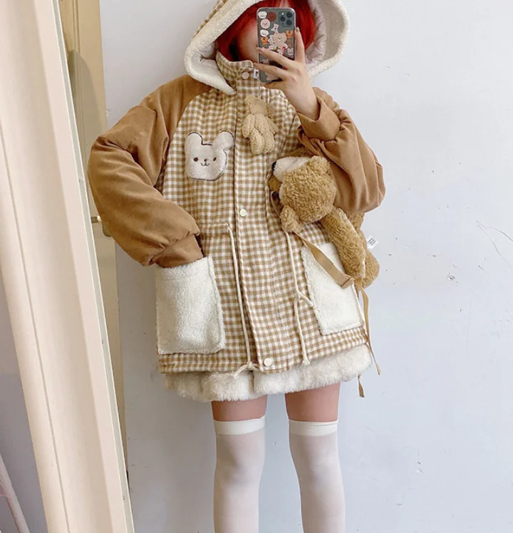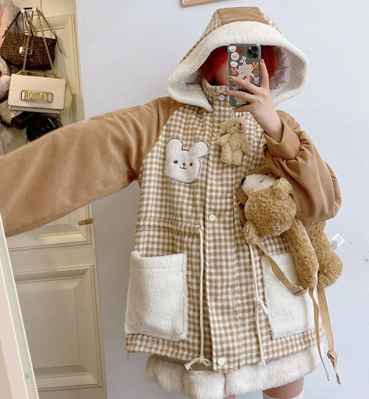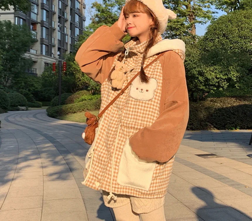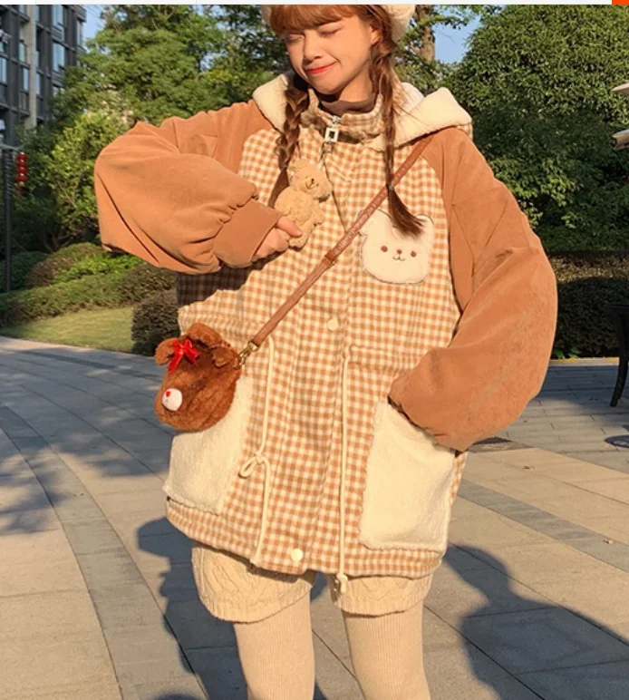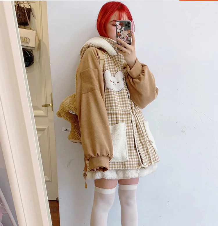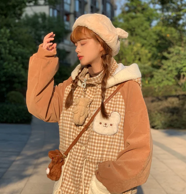Осенне-зимняя куртка с бархатной подкладкой милым медведем милая мягкая теплая