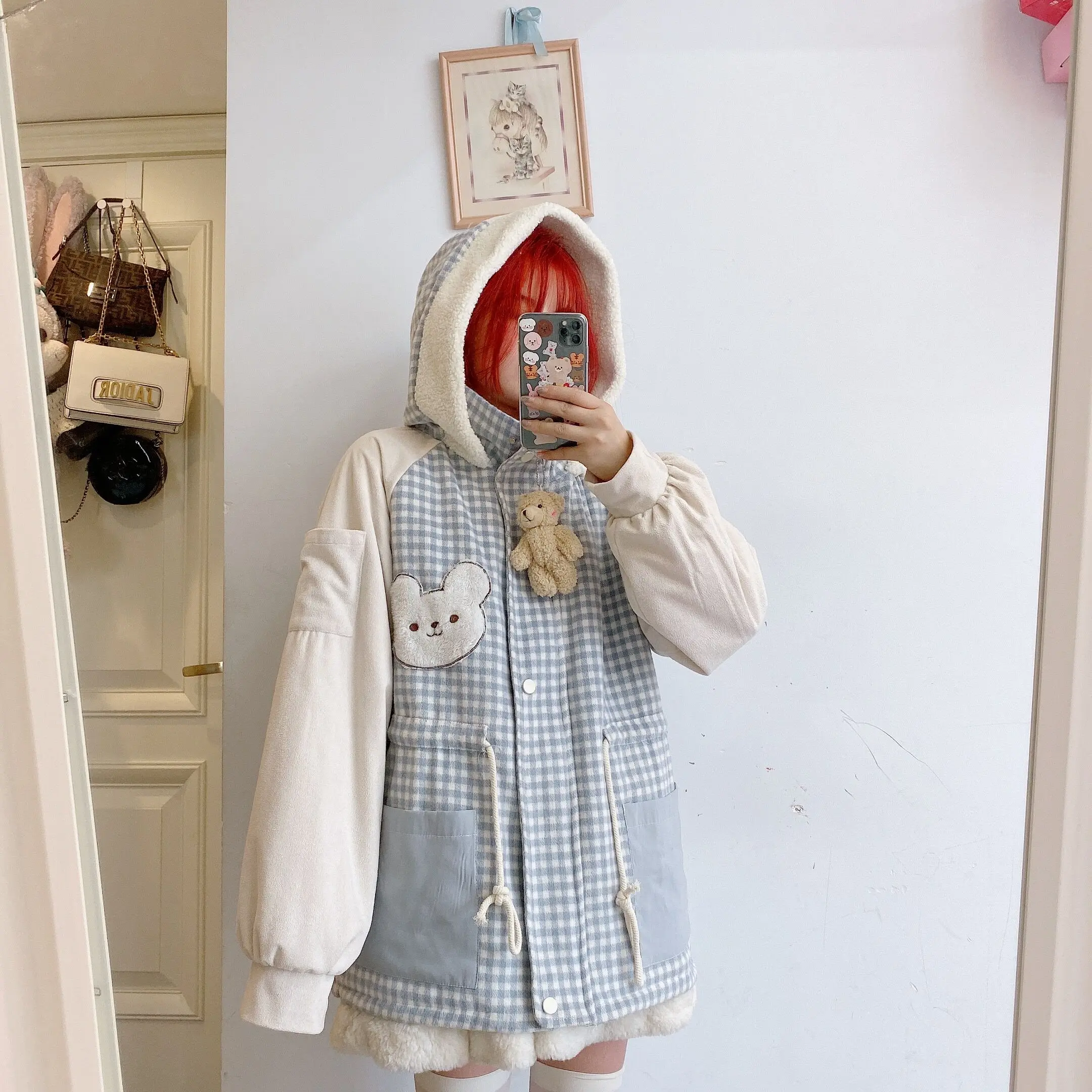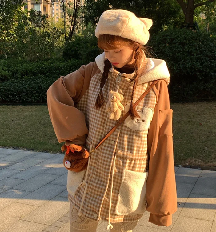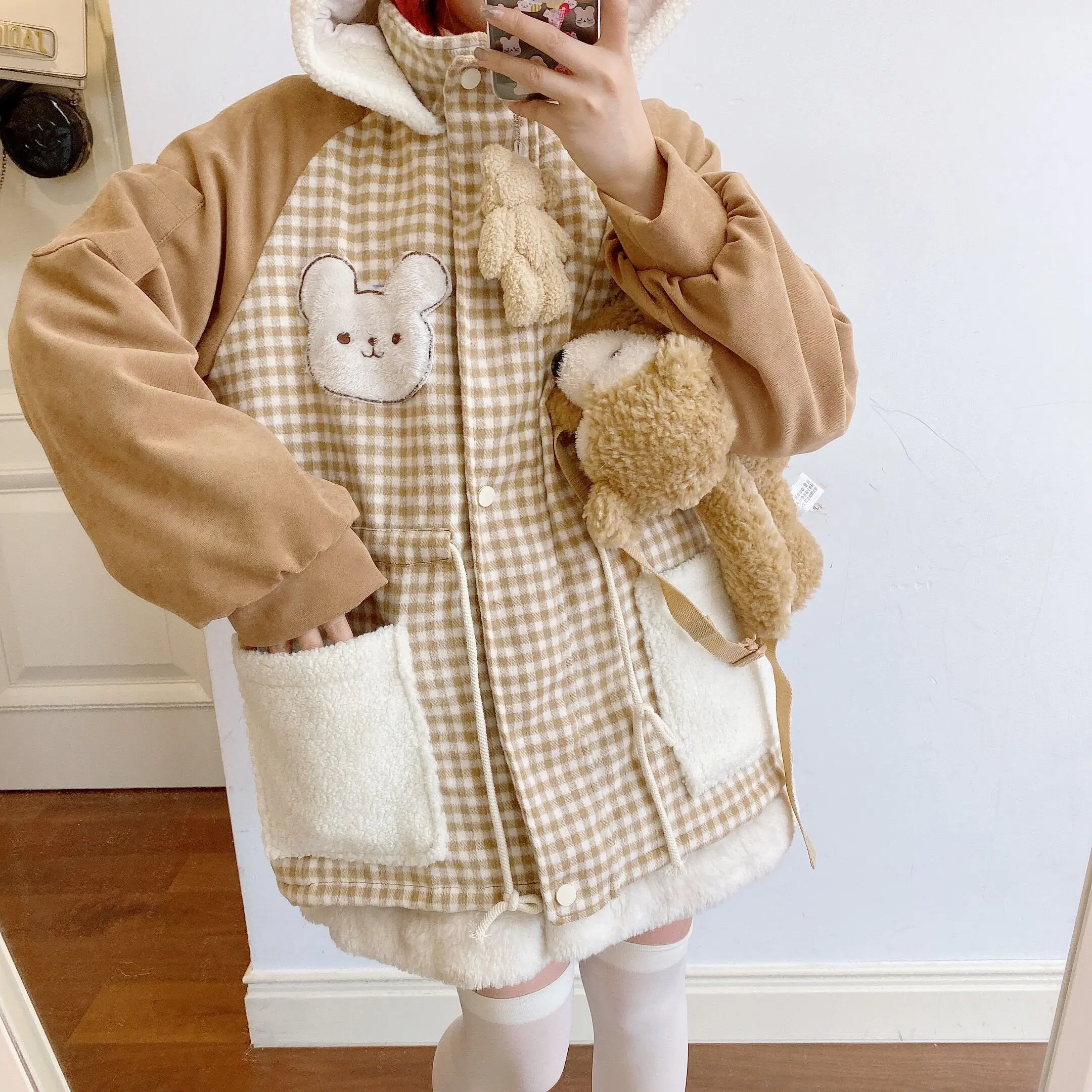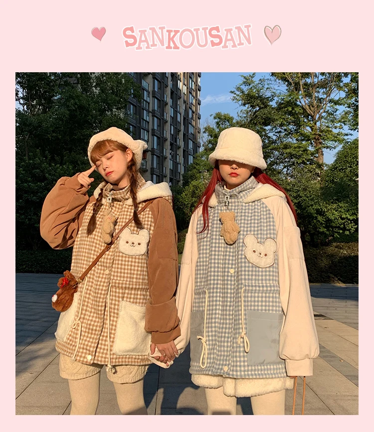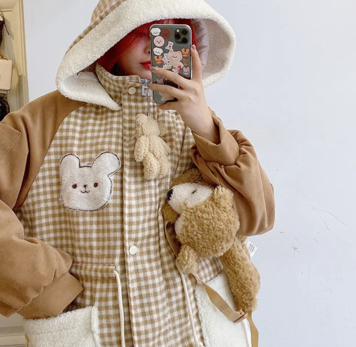 Осенне-зимняя куртка с бархатной подкладкой милым медведем милая мягкая теплая