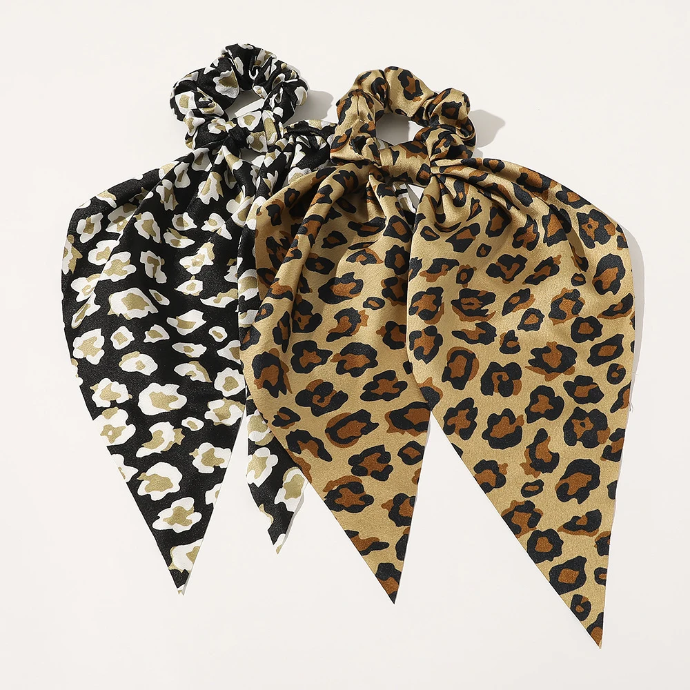 Леопардовый цветочный принт, Женская стримерная резинка для волос в полоску, в горошек, эластичная резинка для волос с бантом, веревка для девочек, милые резинки, аксессуары для волос