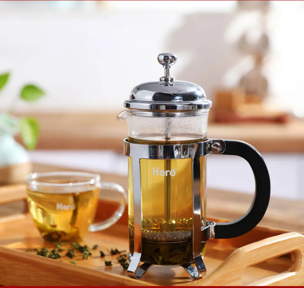 Название продукта: французский пресс-горшок Емкость: 800 мл Материал: нержавеющая сталь, высокое боросиликатное жаростойкое стекло
