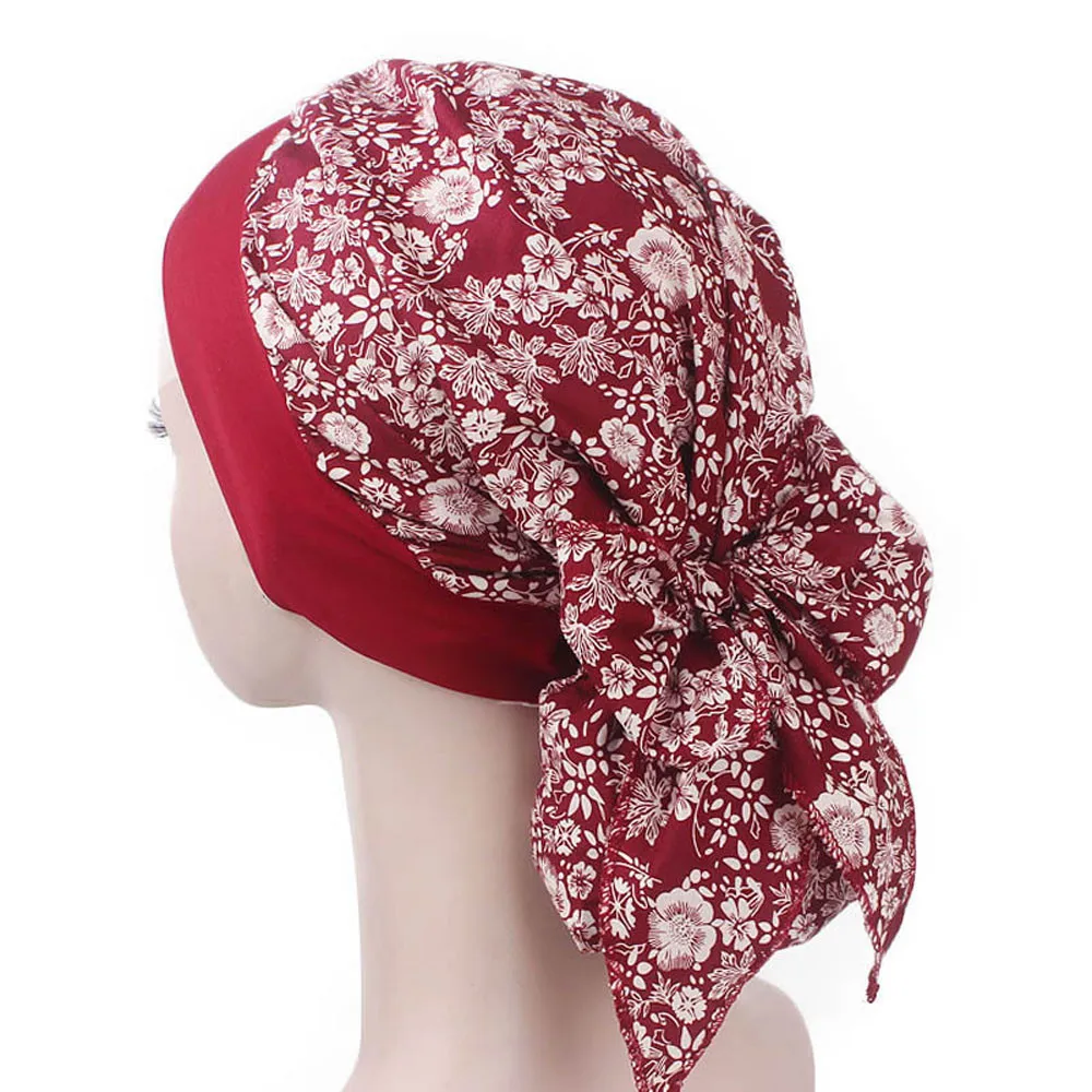 Женская мусульманская шляпа с принтом, растягивающаяся тюрбан в стиле ретро, головной убор