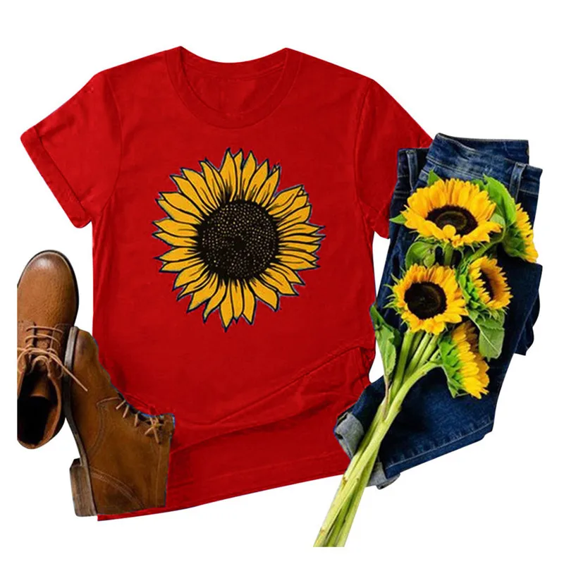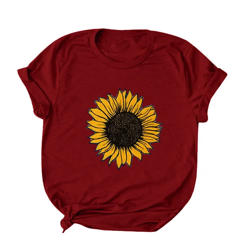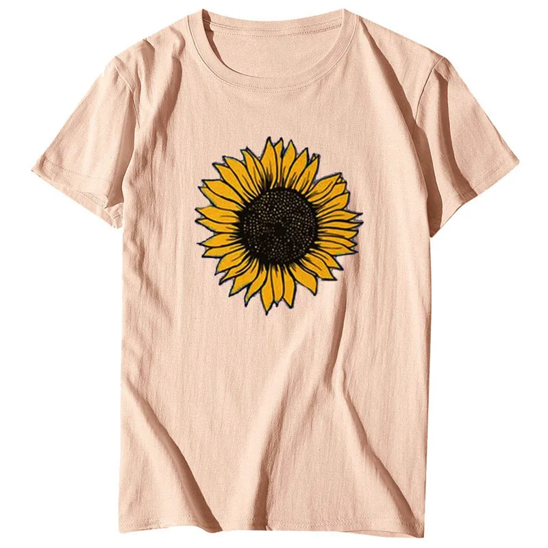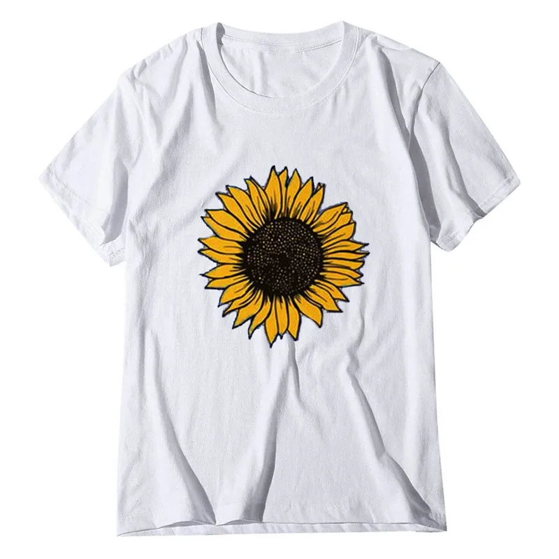 Женская футболка с коротким рукавом и принтом подсолнуха, женская футболка с круглым вырезом, Harajuku, женская одежда, лето 2020