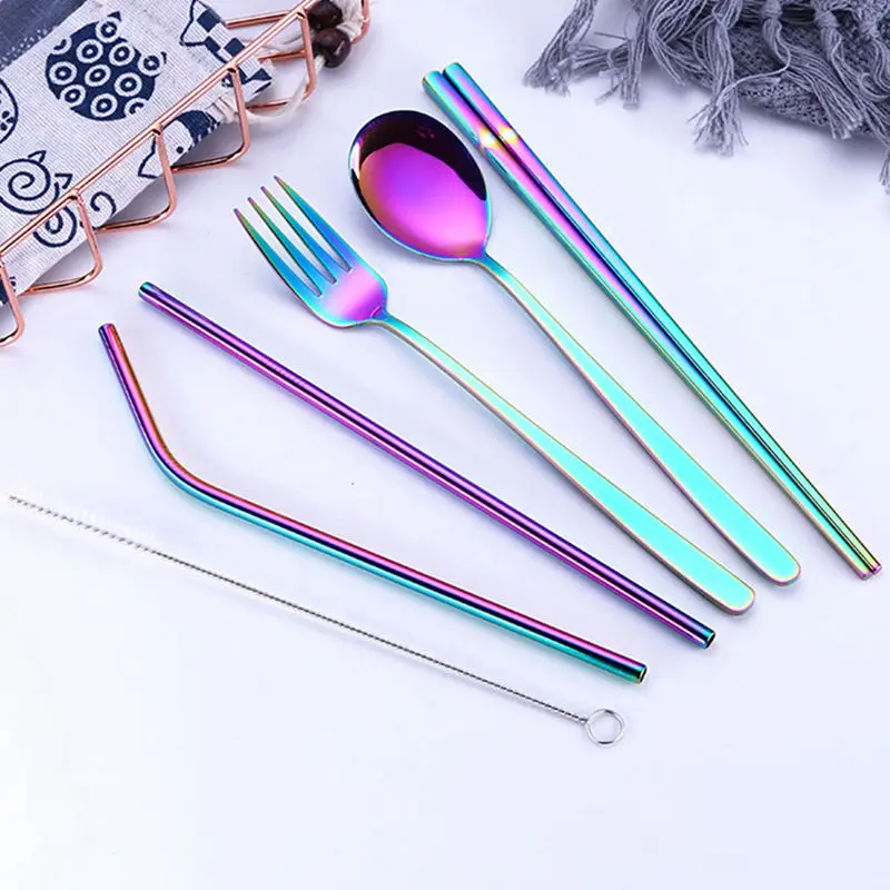 Серебряная нержавеющая сталь креативная титана-покрытая Экологически чистая портативная посуда 304 ложка из нержавеющей стали набор палочек для еды