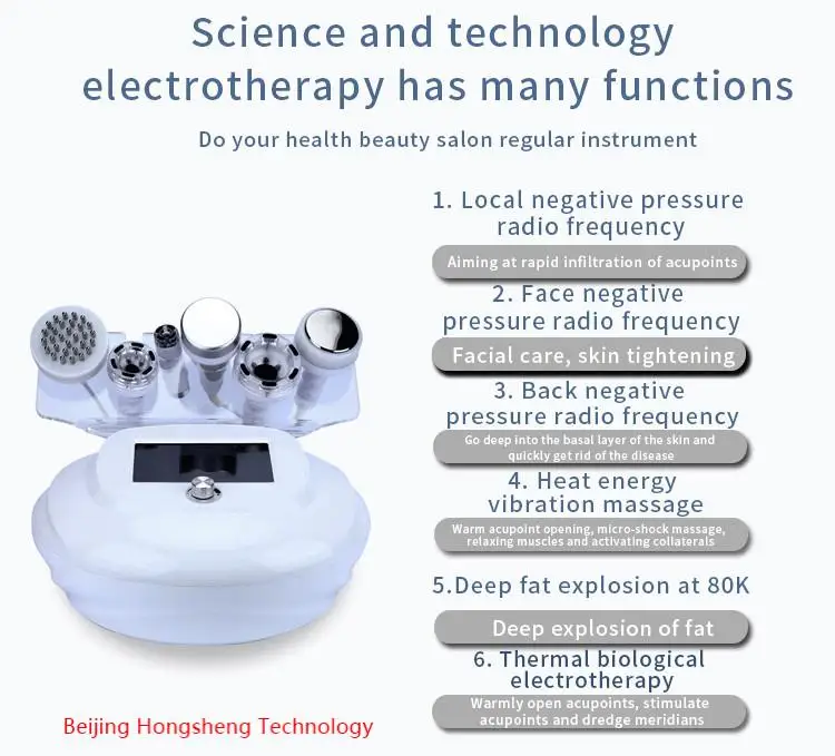 Благодаря коллективной мощной звуковой волновой головке, сильная звуковая волна unoisetion мощностью 80000 Гц может излучаться для вибрации жировых клеток на высокой скорости и производства многочисленных вакуумных воздушных карманов внутри и снаружи жировых клеток, робутно воздействуют на жировые клетки для генерации интровертного взрыва и распадают триглицерид в Глицерол и свободные жирные кислоты. Затем RF волны на частоте 1 МГц применяют для истощения интегрированного глицерина и свободных жирных кислот через гепатоэнтеральную циркуляцию. Наконец, для позиционирования и затягивания жира Используются Вакуумные радиочастотные и энергетические электроды. В физике она известна как "кавитация". Микропора интровертедбласт внутри и снаружи клетки может привести к усиленному молекулярному движению и более высокому уровню энергии, и это, наконец, вызовет разрыв жировых клеток, и там достигается эффект бодибилдинга и потери веса.