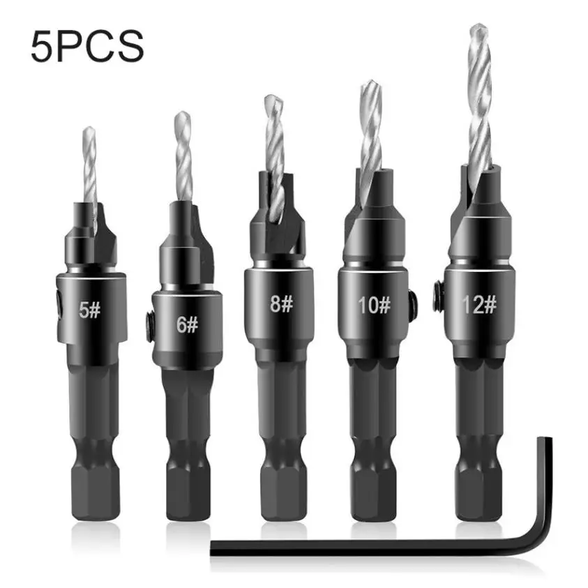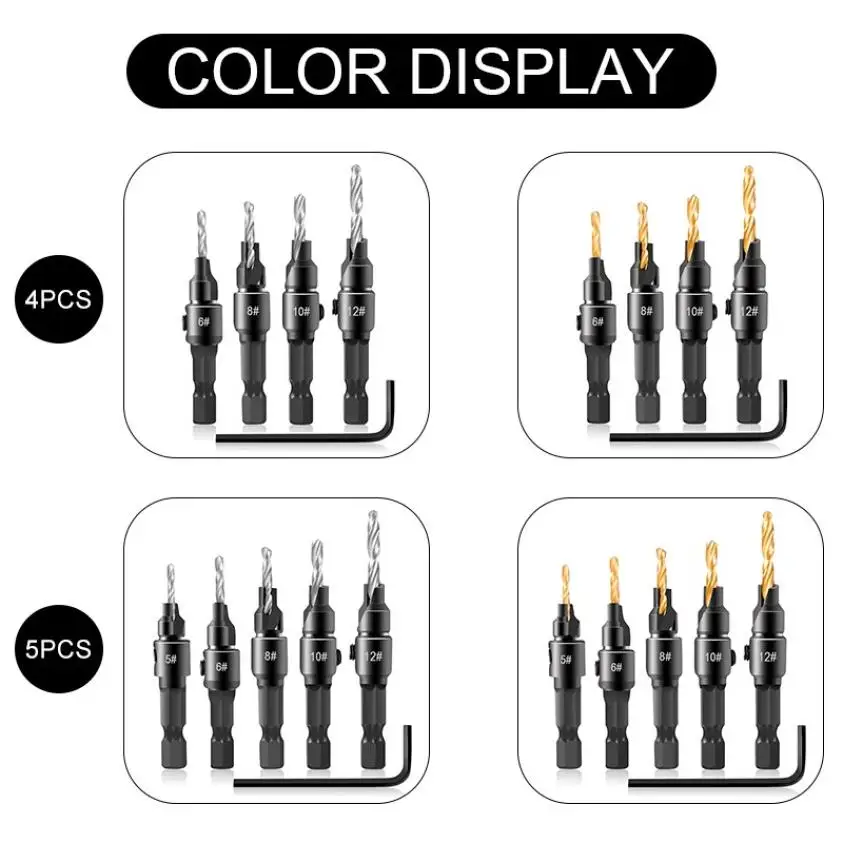 Название продукта: 1/4 шестигранное Коническое отверстие сверло Материал: Высокоскоростная сталь + углеродистая сталь Цвет: черный + серебристый, черный + позолоченный титан Размер: Ручка: 1/4 Шестигранная ручка (6,35 мм) 5 #/1,98 мм 6 #/2,38 мм 8 #/2,78 мм 10 #/3,18 мм 12 #3,56 мм Спецификация: Тип 1: 5 #, 6 #, 8 #, 10 #, 12 # Тип 2: 6 #, 8 #, 10 #, 12 # Вес: около 65 г/83 г Использование: деревообрабатывающее сверло В комплект входит: 4 шт./5 шт. * сверло 1 шт. * гаечный ключ