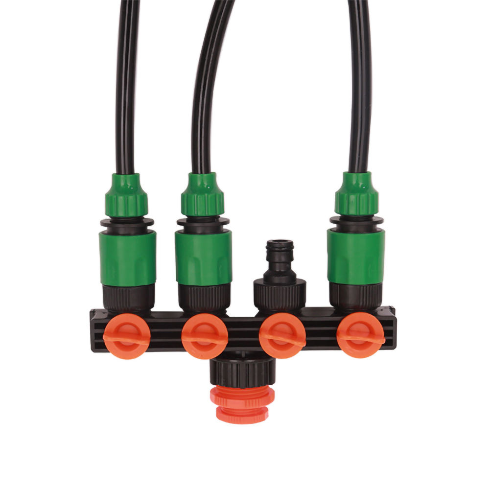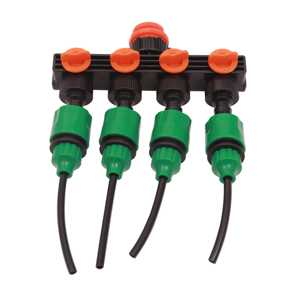 3. Подсоедините один источник воды к 4 зонам, чтобы максимизировать удобство для пользователя. Каждый Соединитель имеет ручку отключения, которая может контролировать поток в соответствии с типом растительности. Он может автоматически орошаться, когда ваш кран плотно прилегает к резьбе и открыть воду, даже ваши соседи могут легко помочь вам позаботиться о ваших растениях, когда вы находитесь вдали.
