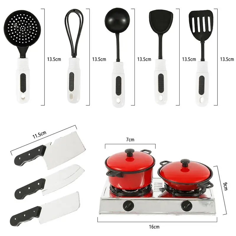 -Набор кухонной утвари из пластика для детских игр включает в себя 13 пластиковых имитационных материалов, не повредит руки детей