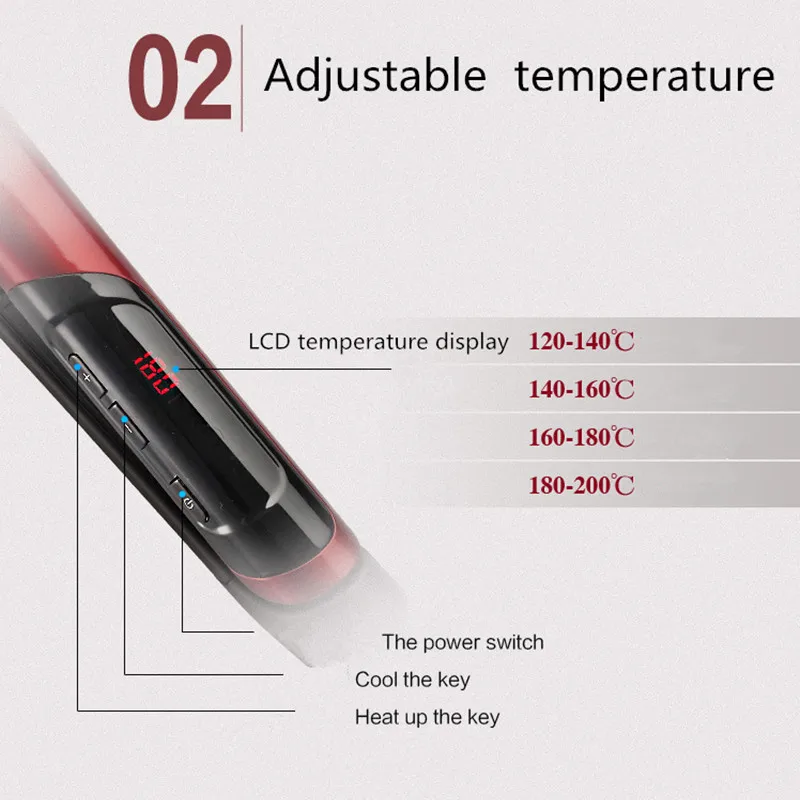 1. Двойное напряжение: 110-240 В, 50/60 Гц 2. Мощность: 45-60 Вт 3. Нагреватель: MCH, мгновенный нагрев 4. Материал тепловой пластины: титан/керамическое покрытие 5. ЖК-дисплей температуры 6. Размер нагревательной плиты: 1,5 дюйм (ов) 7. Максимальная температура: 470 ℃/243 ℃ 8. Поворотный шнур 360 градусов 9. Автоматическое отключение без использования в 60 мин для 60 Гц/72 мин для 50 Гц Плавающие Пластины Специальный инновационный дизайн плоского утюга, более подходящий угол делает выпрямление волос гораздо удобнее, экономит время и экономит время. Сильные особенности плоского железа (1) фактическая Максимальная температура до 243C/470F, эффективная для лечения kertain, высокая температура значительно повысит поглощение питательных веществ кератина. (Обычные плоские утюги не могут это сделать.) (2) Специальный и более разумный дизайн ручки, после длительного использования плоского железа, пользователи не будут чувствовать себя так уставшими. (Но обычные плоские утюги прямые, после использования в течение некоторого времени, очень легко вызвать усталость руки) (3) при одновременном нажатии кнопок «+» и «-» температура может быть свободно изменена между градусами Цельсия и фаренгейтом (4) Большие плавающие пластины и высокая температура для гораздо более быстрого выпрямления волос (5) мокрый и сухой: также можно использовать на волосах, которые немного влажные, что экономит больше времени Тип вилки: EU.US.UK (добавить адаптер).AU (добавить адаптер) Профессиональный влажный/сухой паровой выпрямитель для волос Посылка: 1 * выпрямитель для волос