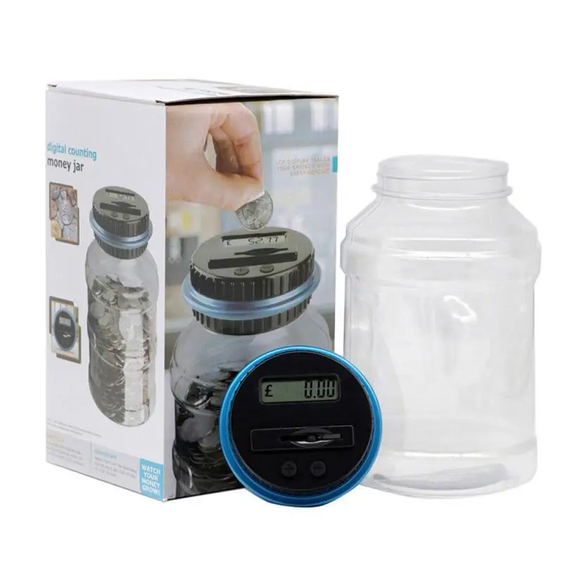 Эта прозрачная банка имеет ЖК-экран на крышке помогает считать ваши монеты, когда они проскальзывают через слот. Он точно подсчитывает ваши деньги и отображает общую сумму каждого депозита.