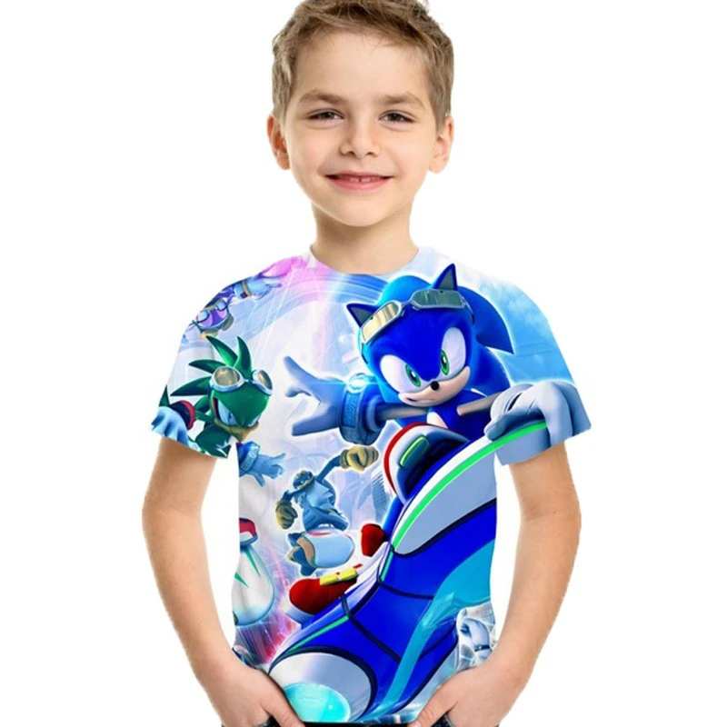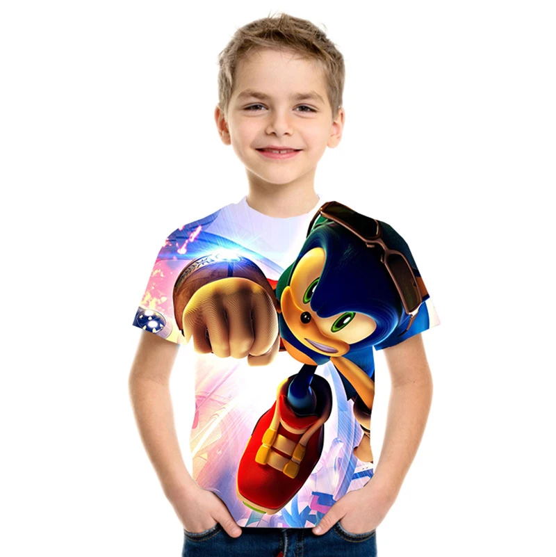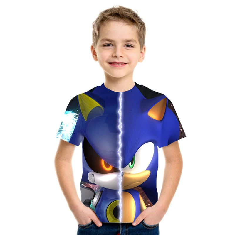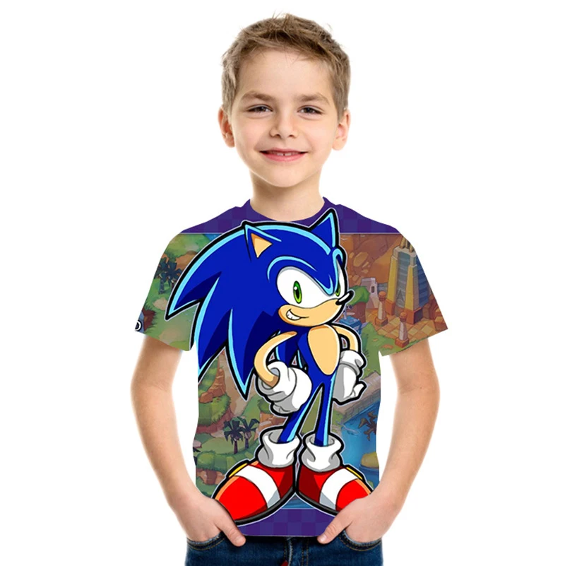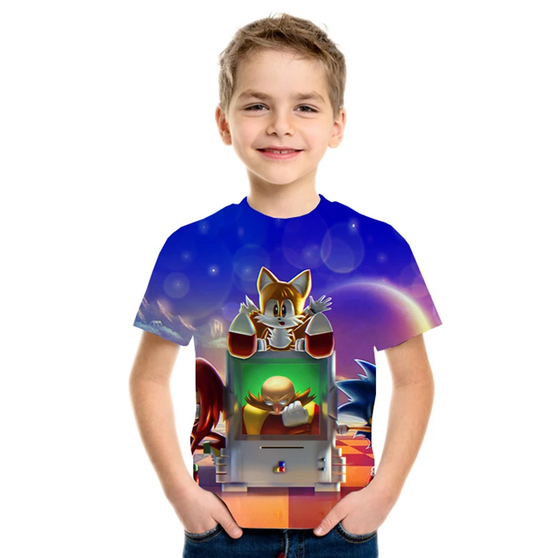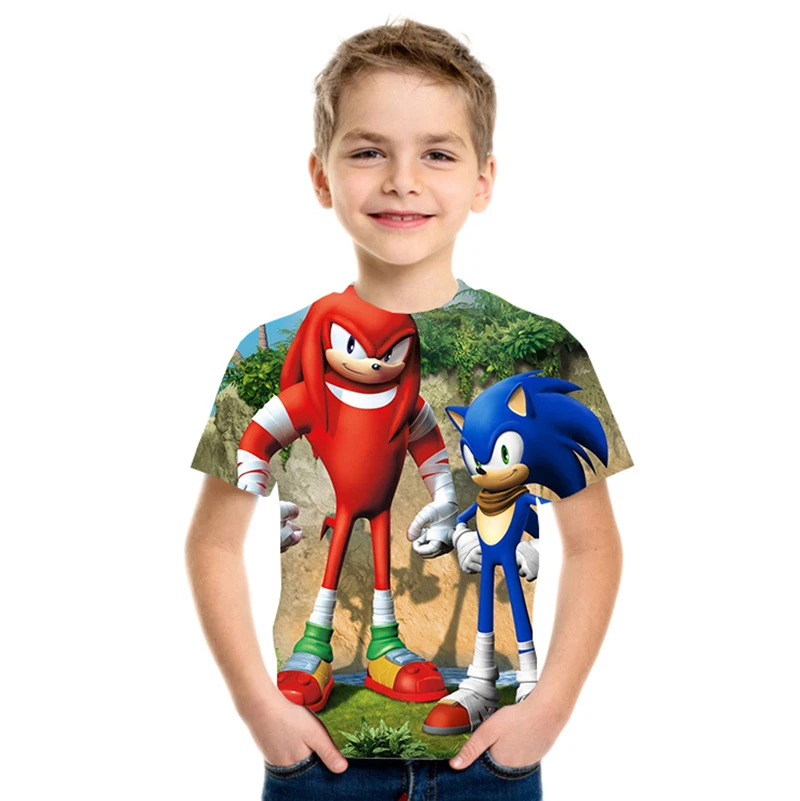 Летняя футболка для мальчиков Соник Ежик Мода 3D печать Забавный короткий рукав мультфильм хлопок футболка Топы Одежда для маленьких мальчиков