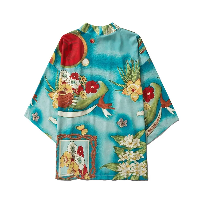 3. Открытые спереди3/4Рукава,Принт, Повседневная летняя накидка.