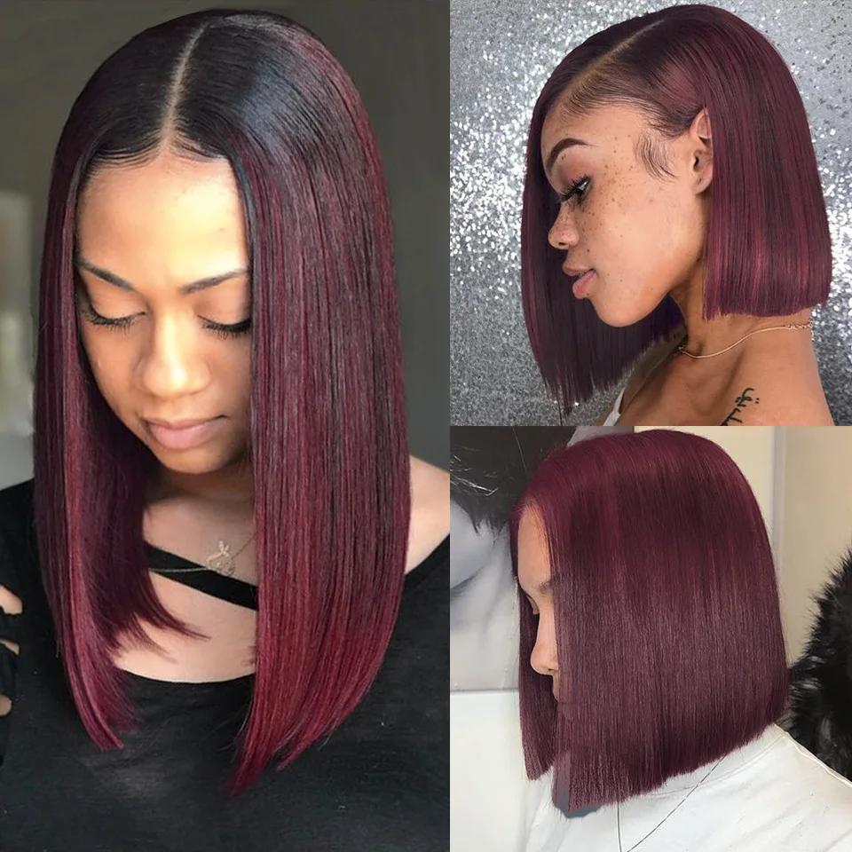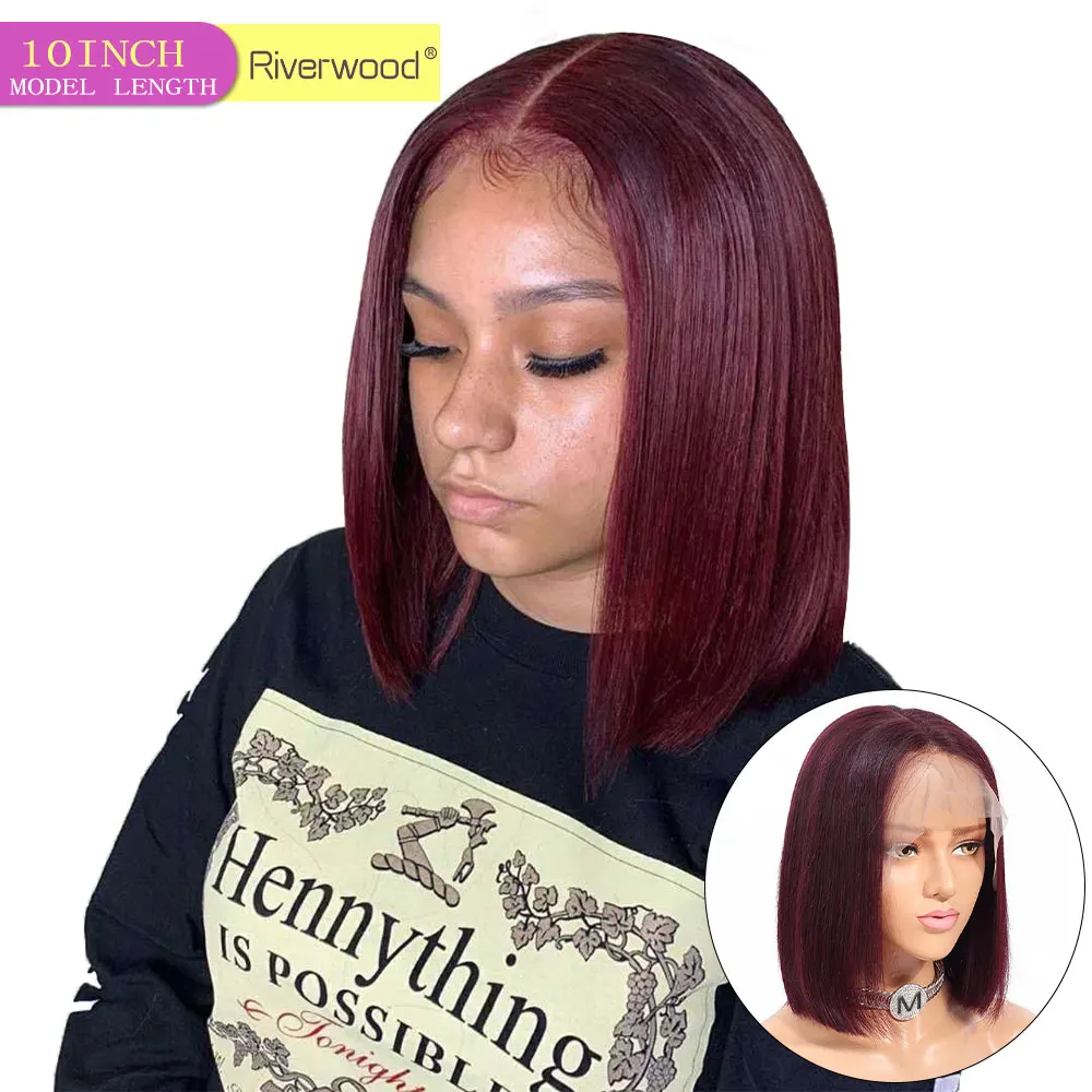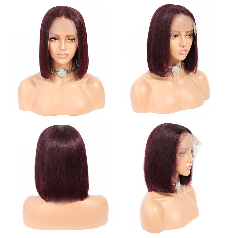Короткий парик Боб бразильские прямые Remy #27 человеческие волосы парики 150% Плотность 13*4 предварительно сорванные бордовый красный 99j Боб кружевные передние парики