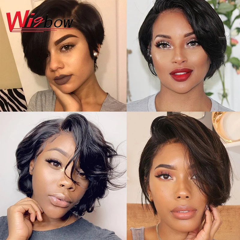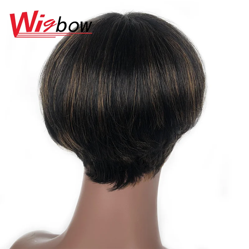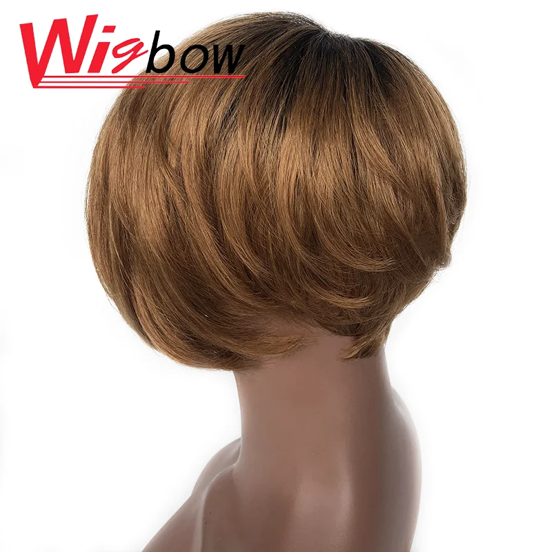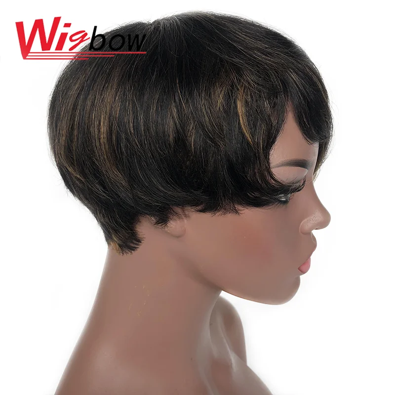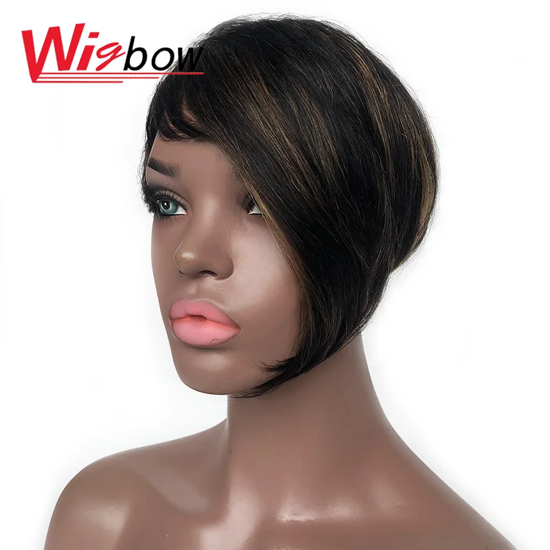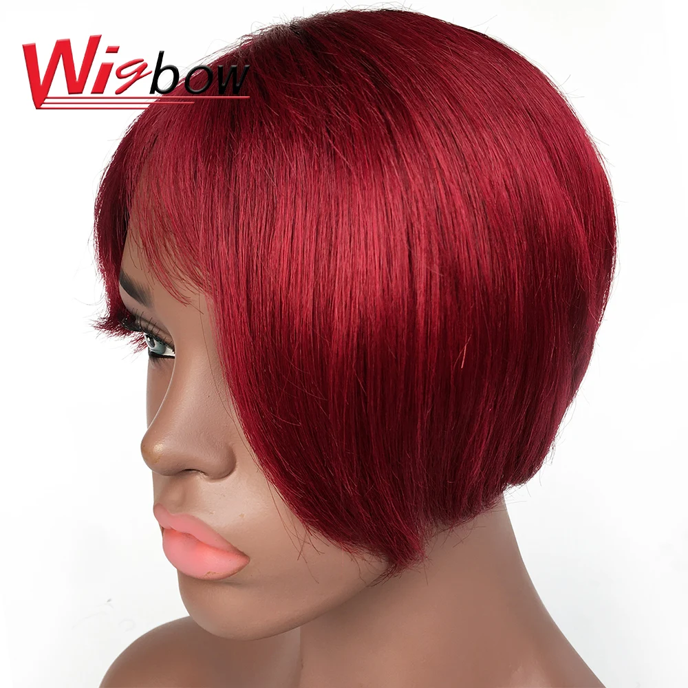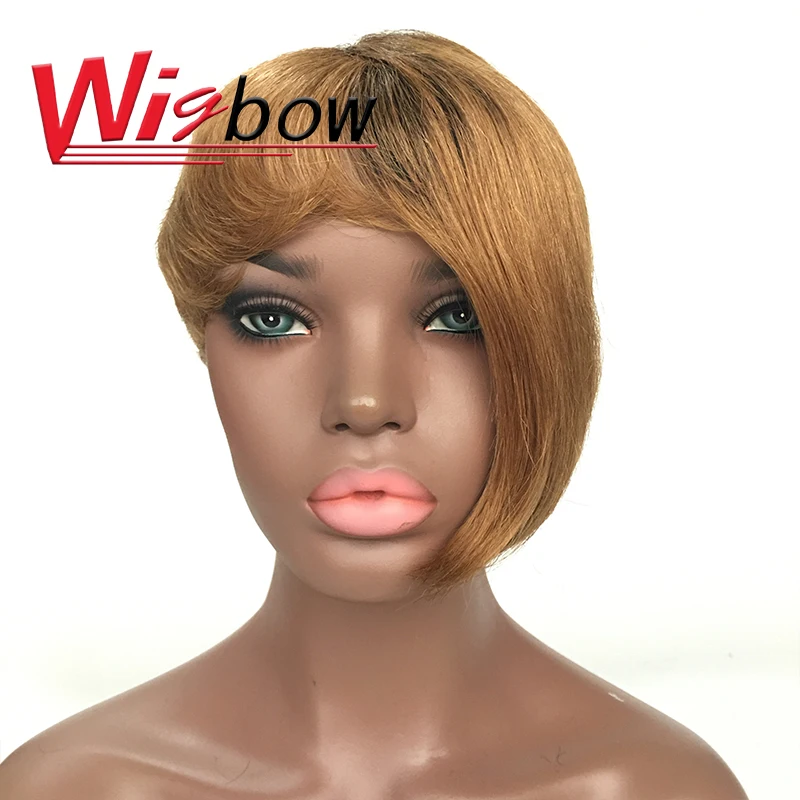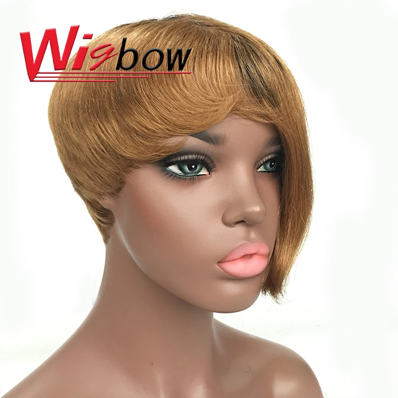Красочные Омбре парик Пикси 100% настоящие перуанские человеческие волосы короткие парики с челкой для черных женщин