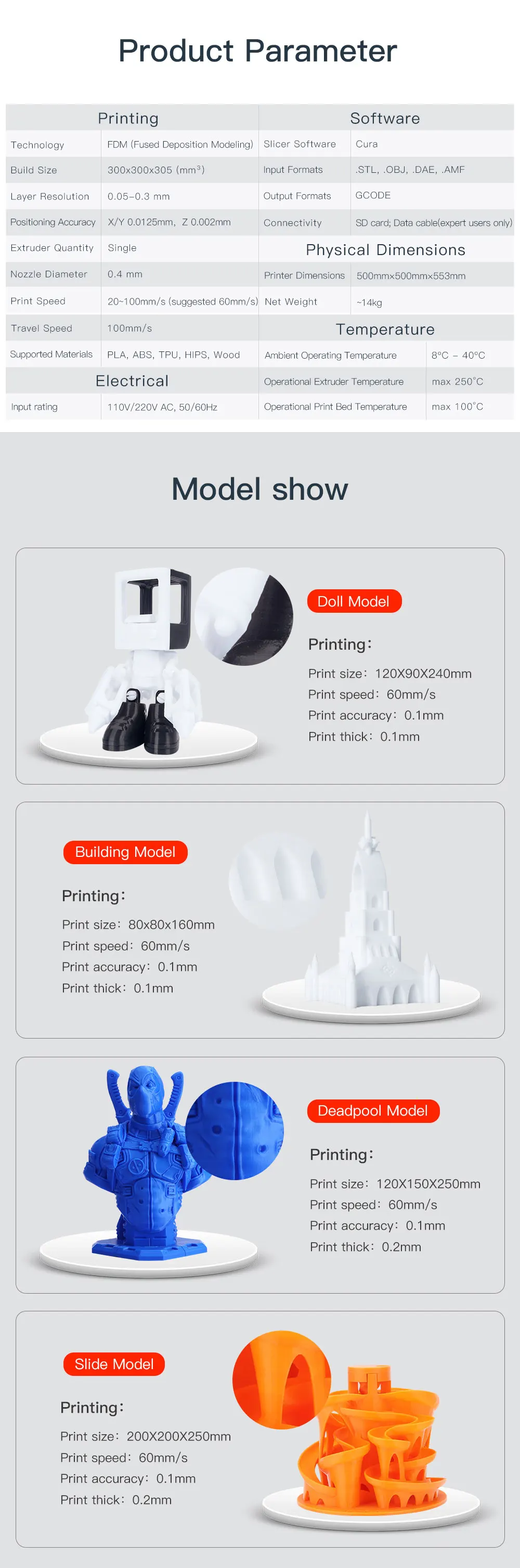 Поддерживаемые материалы: PLA, HIPS, Wood и т. д.