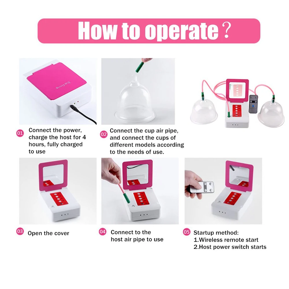 Материал: PP Цвет: прозрачный + розовый Мощность: 60 Вт Зарядное устройство Вход Напряжение: 100-240 В пер. тока, 50/60 Гц Выходное напряжение зарядного устройства: 5 В Режим питания: перезаряжаемый Время зарядки: 4 часа или около того Метод управления: пульт дистанционного управления Регулировка шестерни: 5 файлов Режим: можно выбрать 2 режима Он используется для зарядки более 1 часа. Время каждого использования: 15 минут автоматически останавливается A/B Чашка диаметр: 12,5 см/4,92 "(прибл.) C/D Кубок Диаметр: 13,5 см/5,31 "(прибл.)