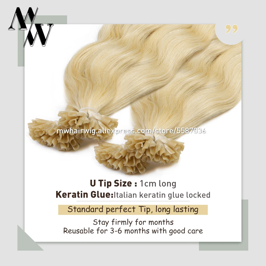 MW натуральные волнистые кератиновые накладные Человеческие волосы Remy для наращивания с кератином 20 "1,0 г/локон блонд