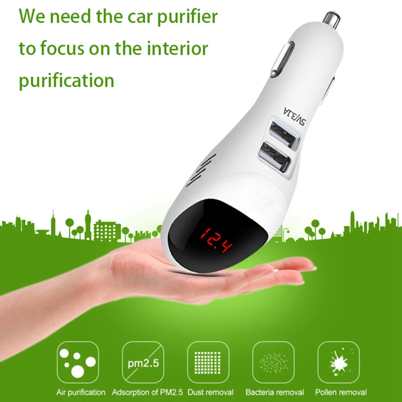 Автомобильный очиститель воздуха 12 В 24 В отрицательные ионы воздухоочиститель-ионизатор освежитель воздуха автоматический цифровой дисплей двойное автомобильное зарядное устройство USB