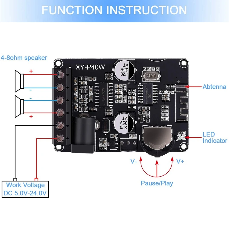 Плата усилителя мощности Bluetooth высокой мощности-это беспроводной цифровой усилитель o, который поддерживает двухканальные стереозвуки, высоковосстановленный источник звука для четкого качества звука. Встроенный модуль усилителя для прямого подключения к громкоговорителям, регулировка громкости.